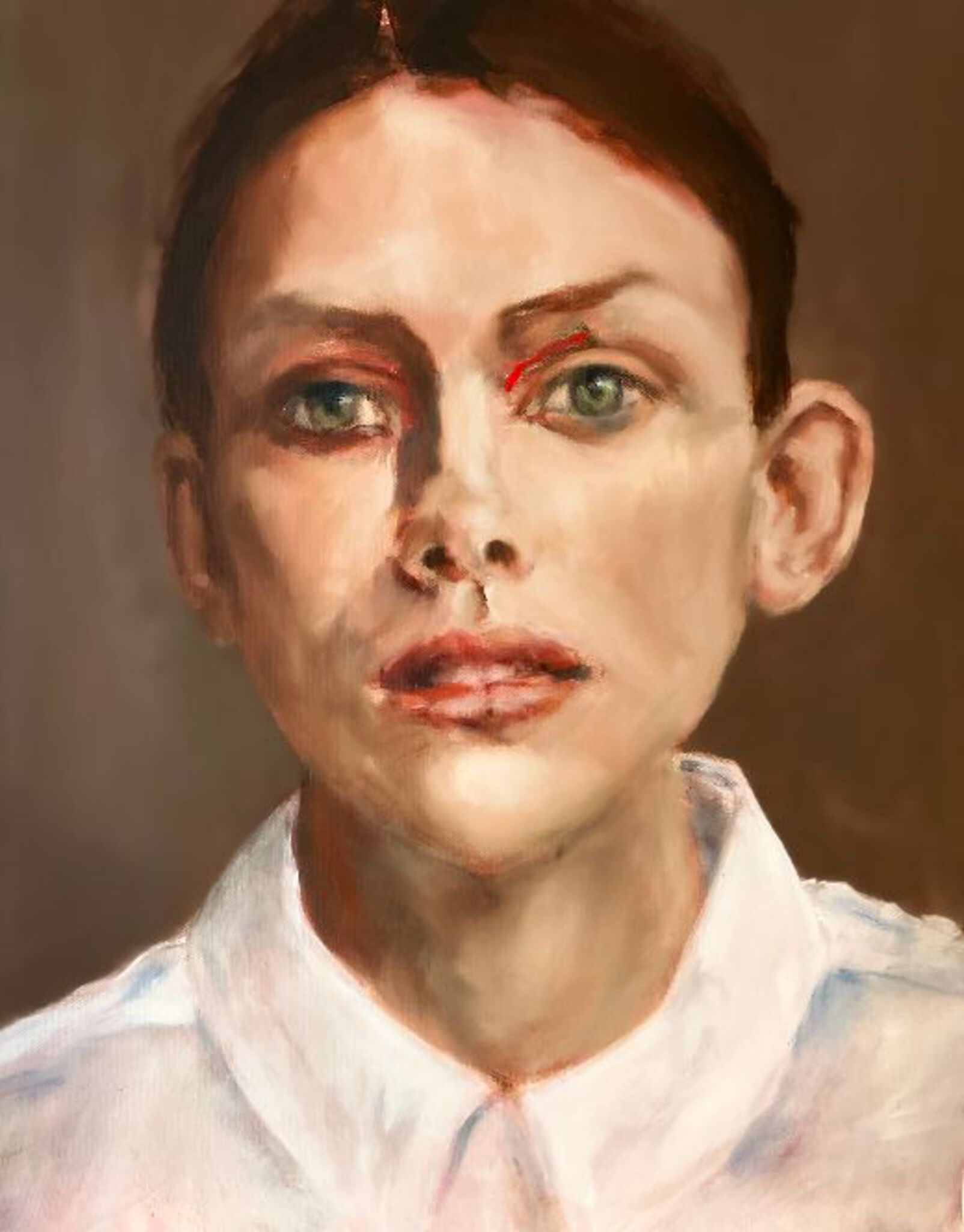De portretten die ik schilder, naar model of gevonden beeldmateriaal, zijn voor mij vooral een middel om een verhaal of gevoel te verbeelden.