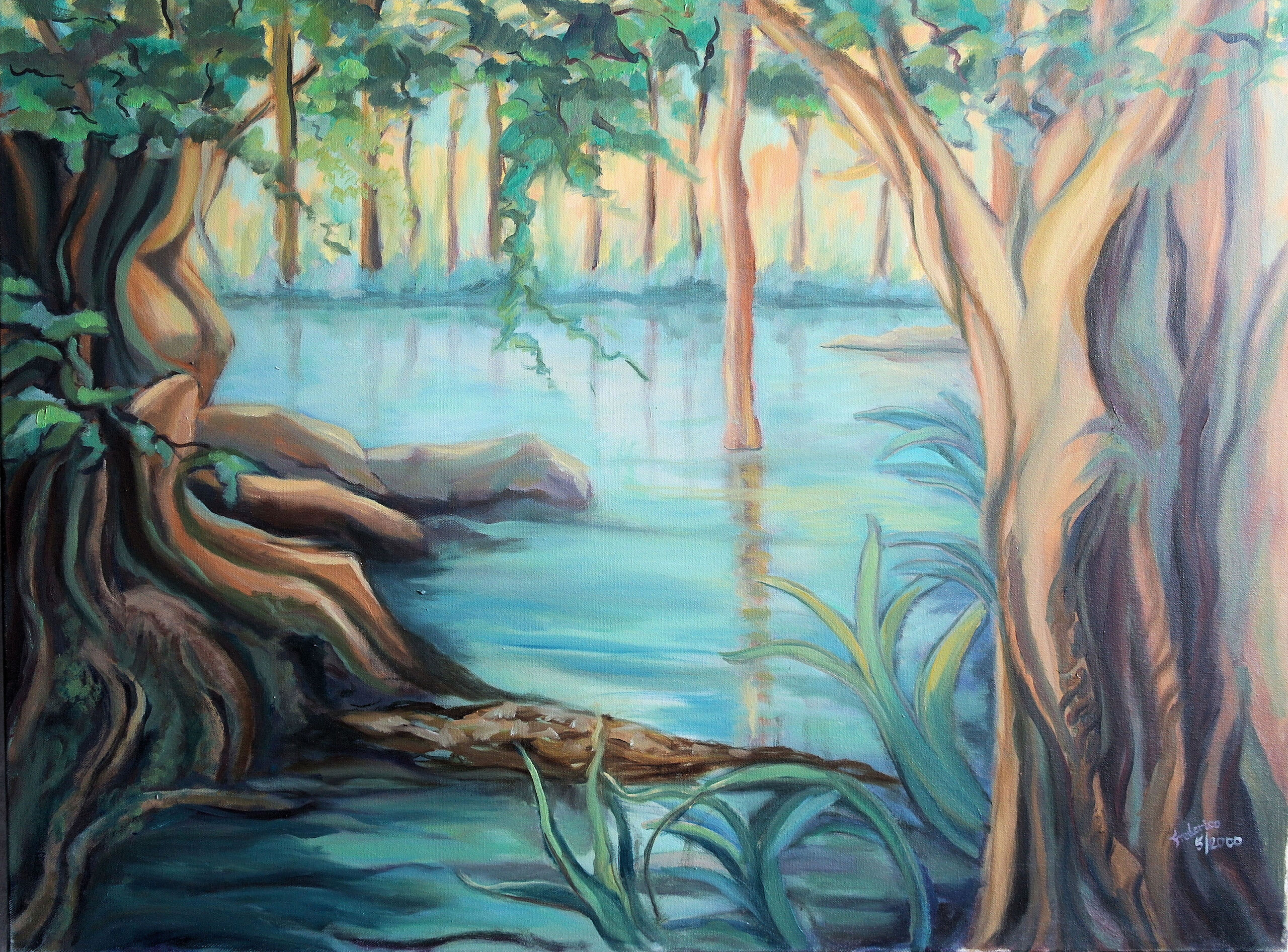 Dit schilderij “Bosmeer” vangt de serene schoonheid van een verborgen meer midden in het bos. Het zachte spel van licht door de bomen weerspiegelt in het kalme water en nodigt uit tot een moment van stilte en bezinning. Met warme aardetinten en koele blauwen ontstaat een harmonieus contrast dat rust en diepte brengt in elk interieur. Een werk dat de kijker meeneemt naar een magische plek waar natuur en stilte samenkomen – ideaal voor liefhebbers van landschappen, natuur en sfeervolle kunst.