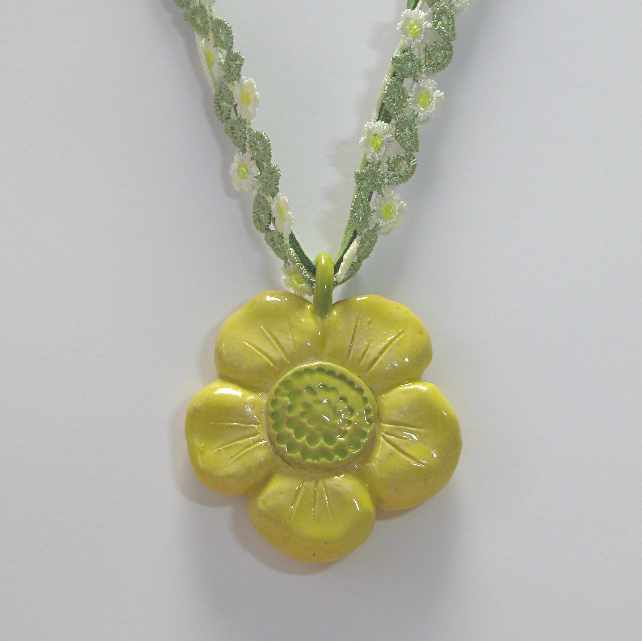 Geel Groen Bloem Keramiek Collier Hangen