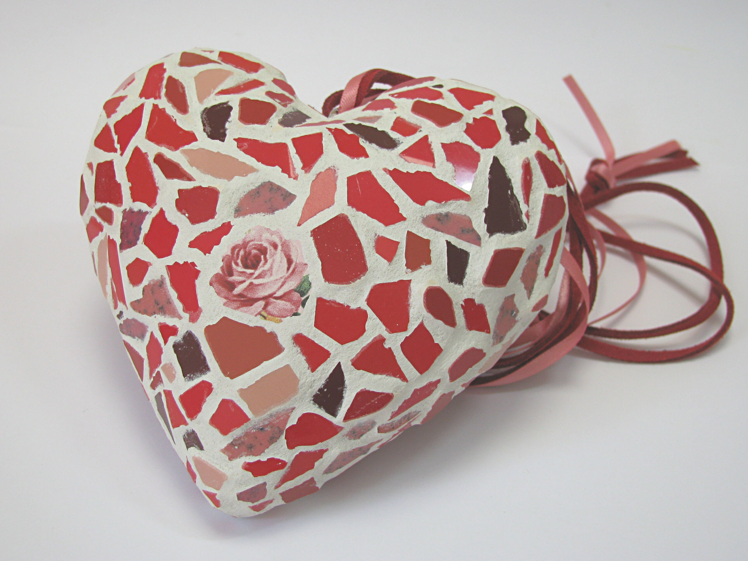 Rood Hart Liefde Bloem Roze Keramiek Wandobject Mozaiek