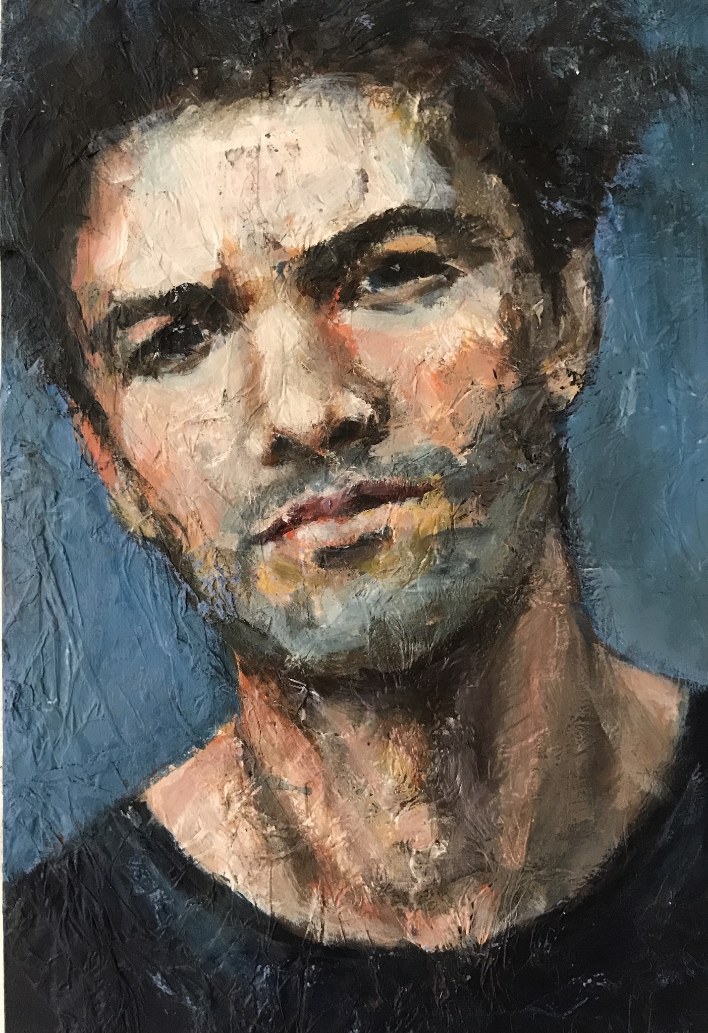 De portretten die ik schilder, naar model of gevonden beeldmateriaal, zijn voor mij vooral een middel om een verhaal of gevoel te verbeelden.