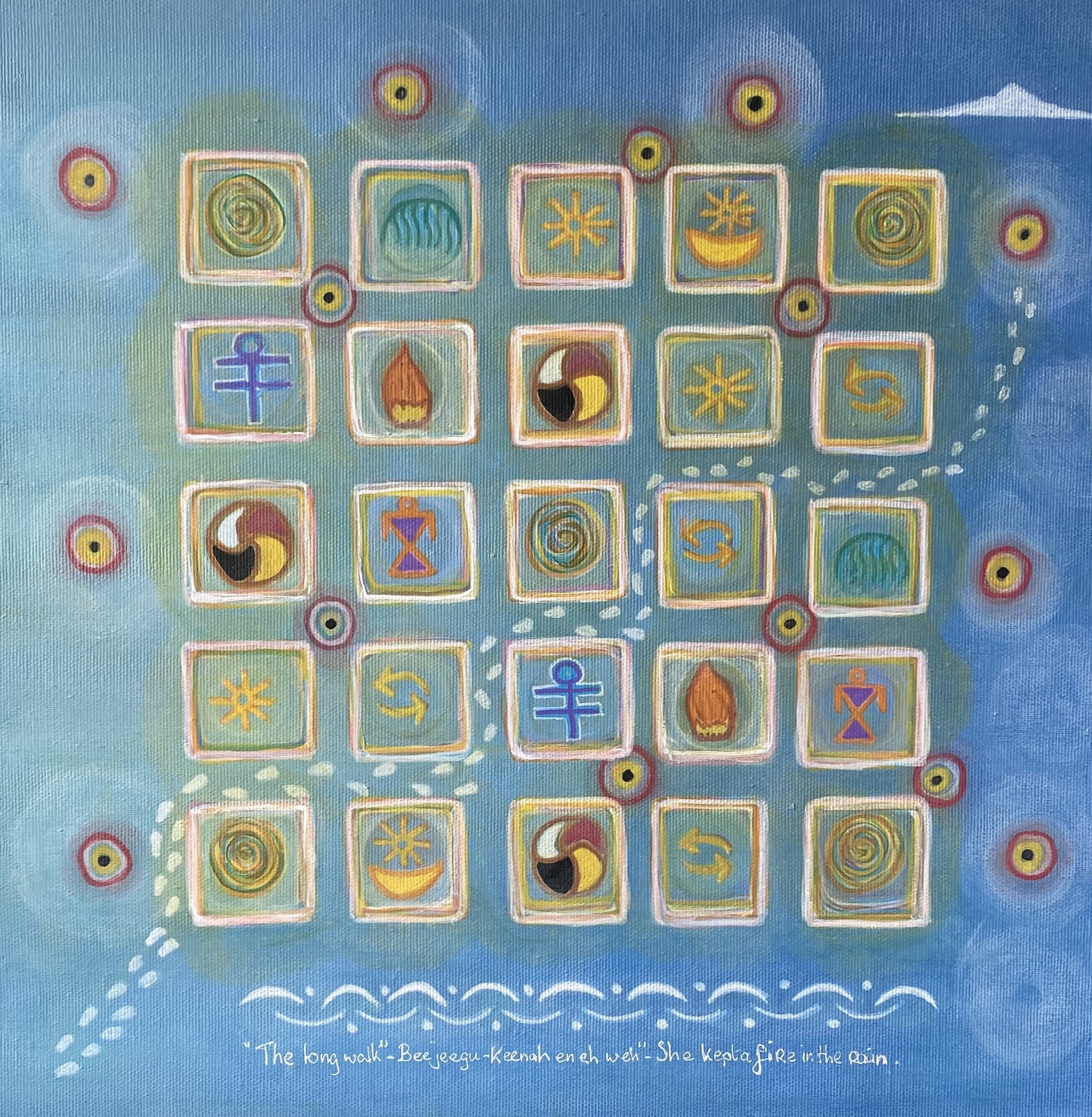 Lichtwachters 2 – kaart van het leven "Elke vierkant is een halte, elke vorm een ervaring, elke kleur een emotie. Samen vormen ze geen rechte weg, maar een dans van paden die ons steeds weer terugbrengen naar de stroom van het geheel. De kaart toont geen bestemming, maar een herinnering: dat we al deel uitmaken van het leven zelf."