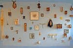 In deze voormalige trekautomaat voor snacks liggen nu verschillende relieken. Op deze foto zijn twee vakjes te zien.