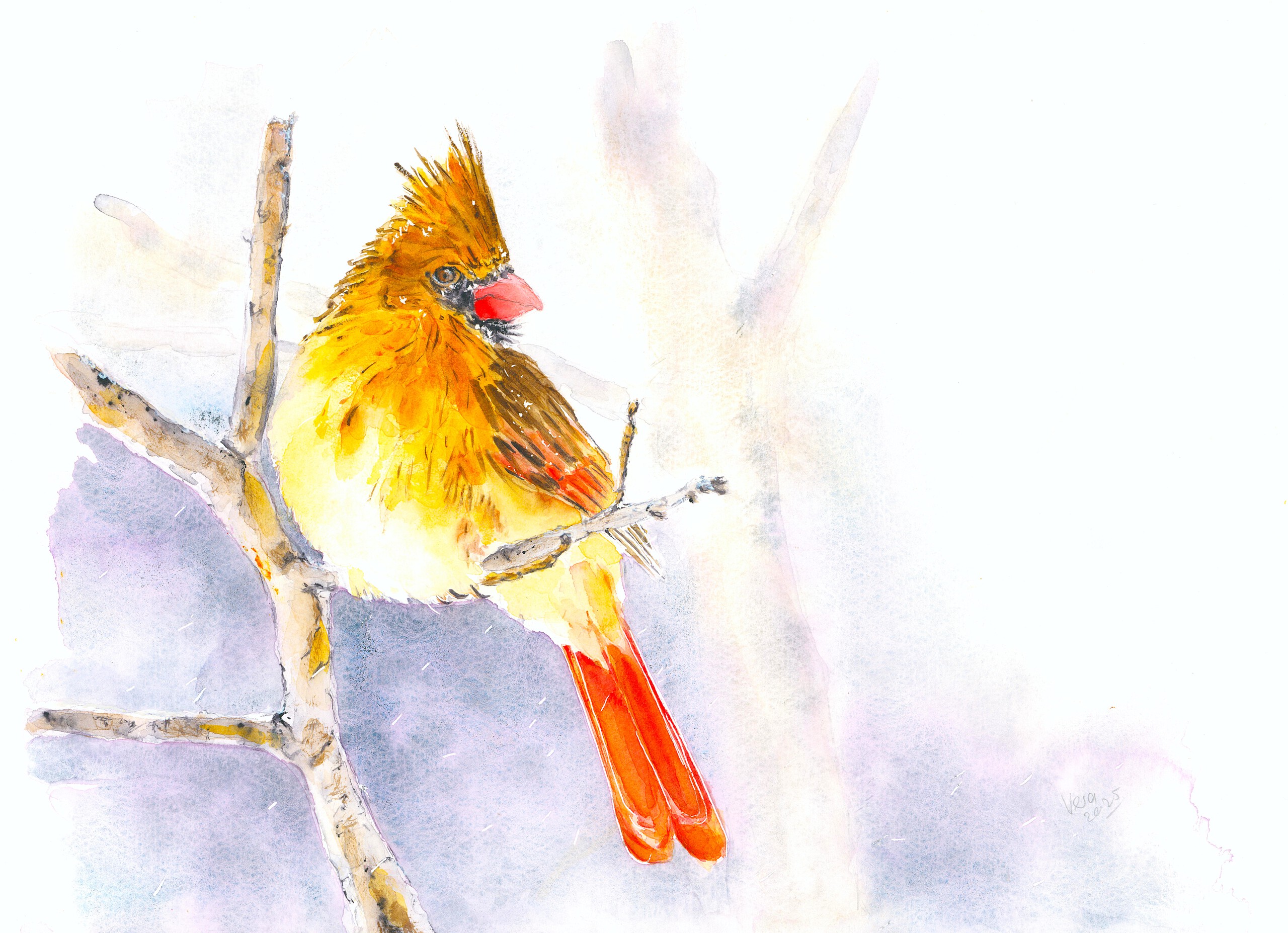 Vogel Aquarel Winter Female Bird Cold Cardinal