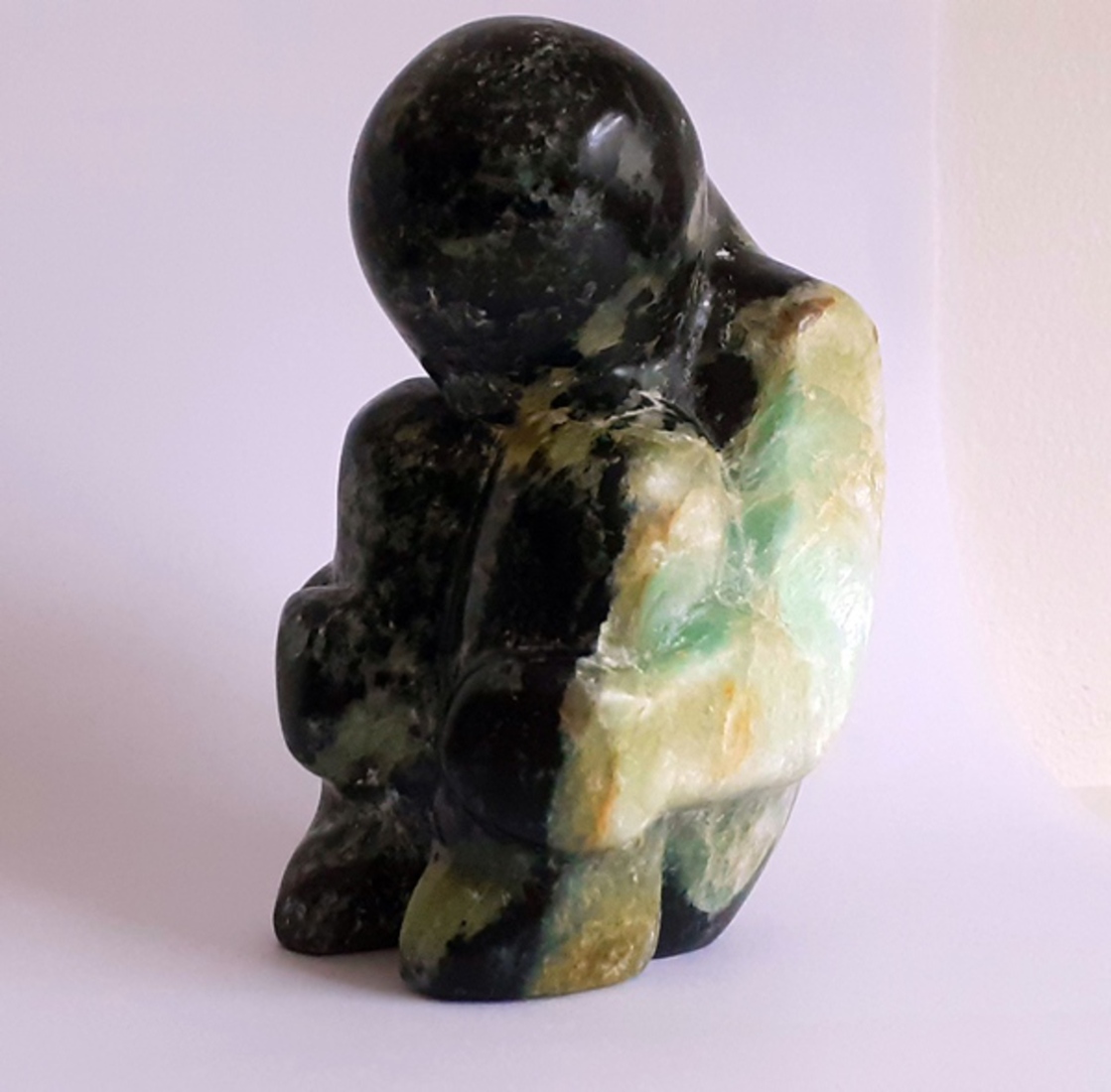 Zittend Mens Speksteen Groen Zwart