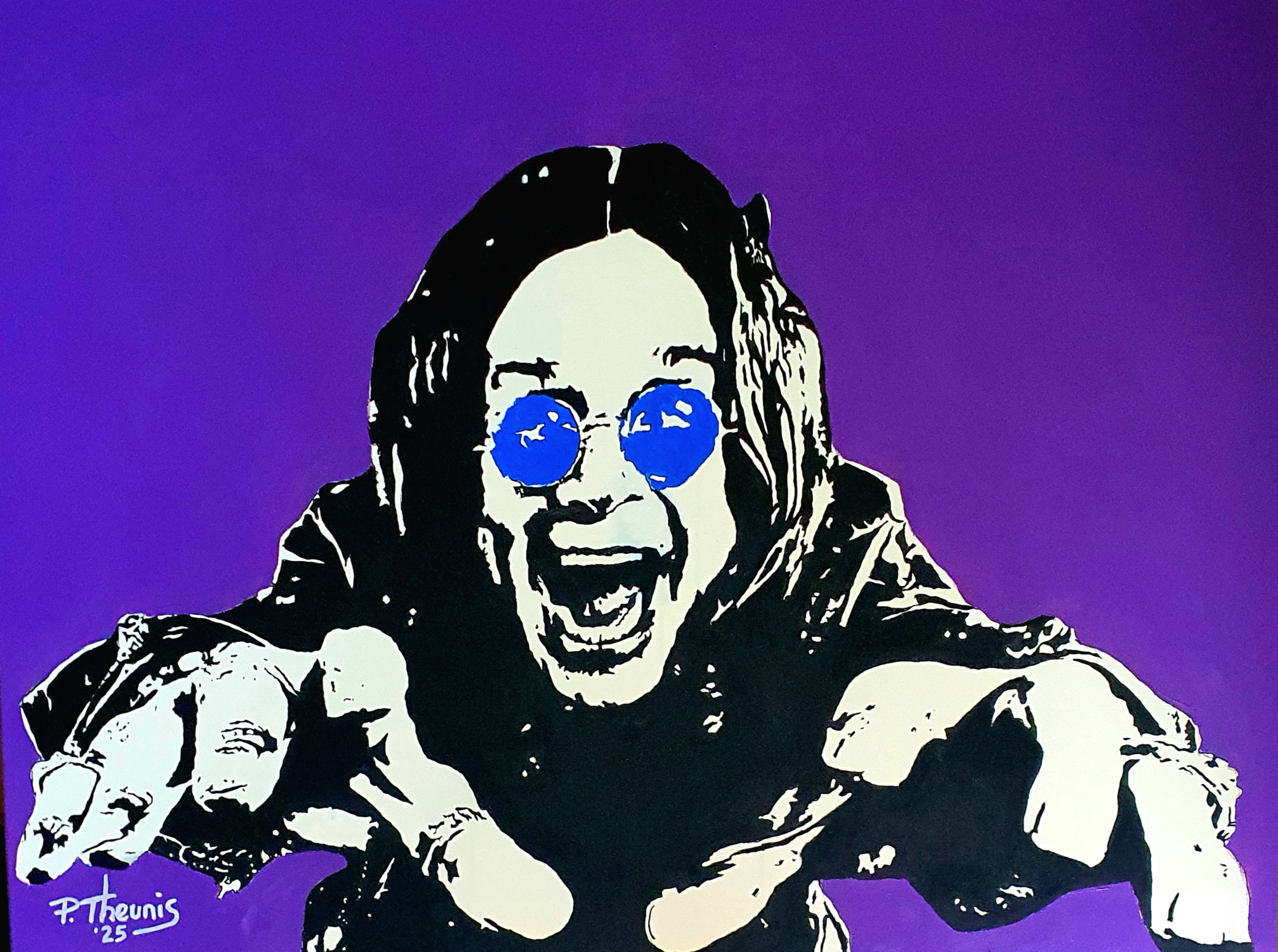 Pop-Art van de legendarische Ozzy Osbourne in zijn lievelingskleuren en meteen een ode aan hem in acrylverf.