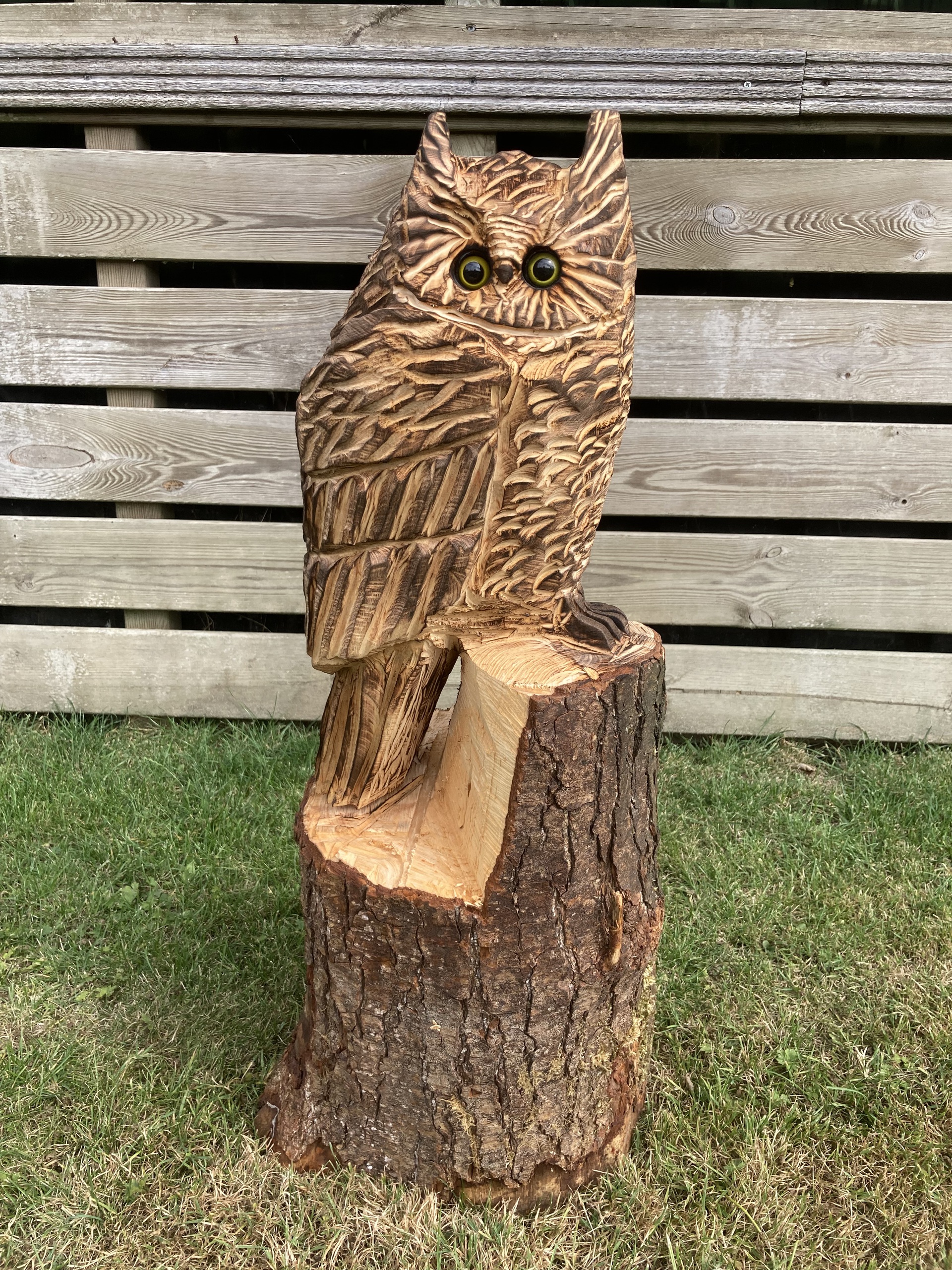 Uil Oehoe Houtenbeeld Sculptuur Boomstam Hout Houtsculptuur Woodcarving Kettingzaagkunst