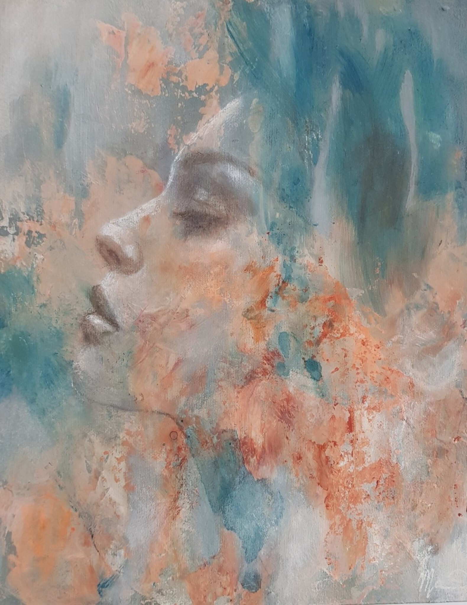 Marieke Samuels maakt schilderijen van vrouwengezichten. Het werk is kleurrijk en dynamisch en toch is er sprake van een pose en verstilling. Juist die tegenstrijdigheid maakt het werk interessant.