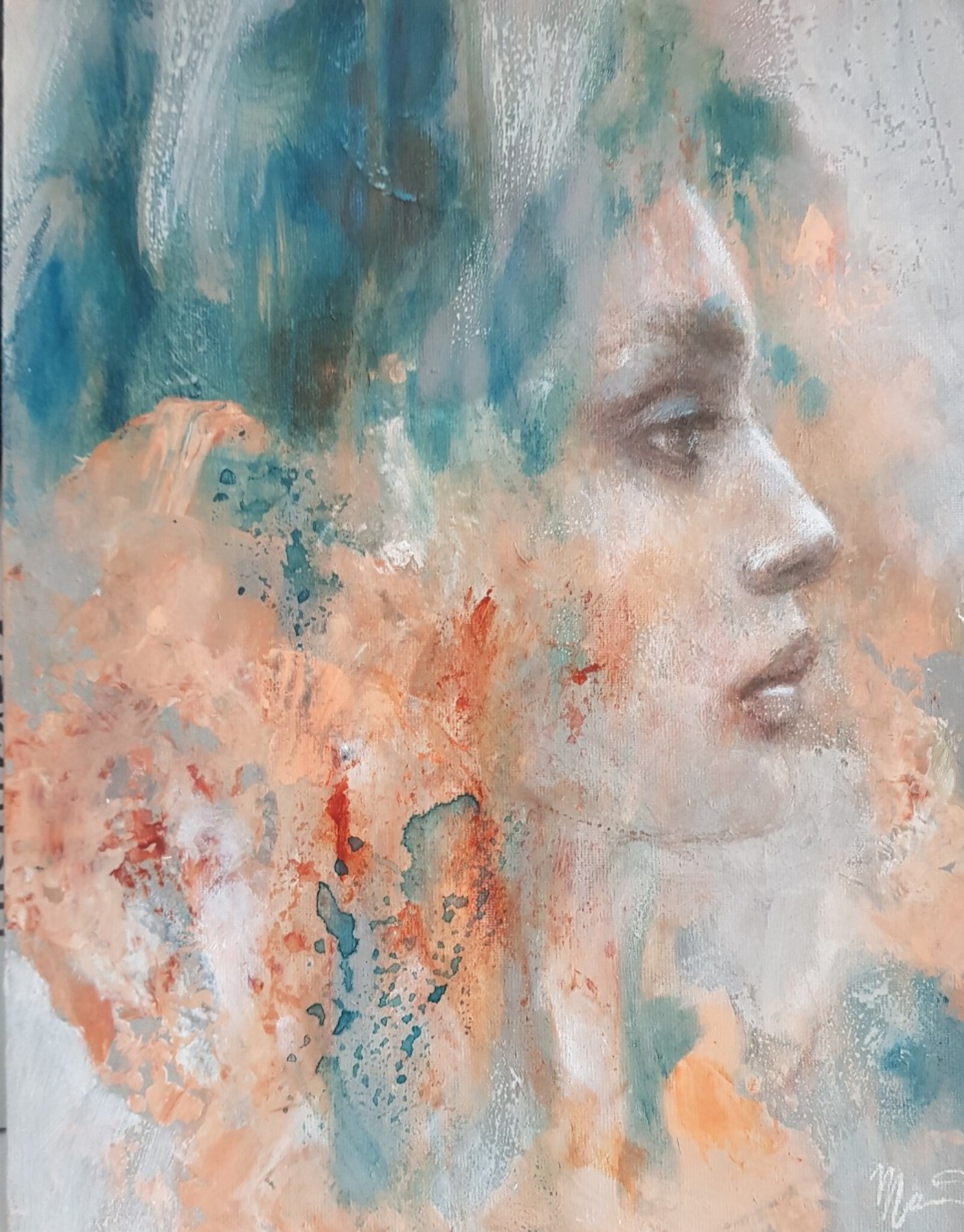 Marieke Samuels maakt schilderijen van vrouwengezichten. Het werk is kleurrijk en dynamisch en toch is er sprake van een pose en verstilling. Juist die tegenstrijdigheid maakt het werk interessant.