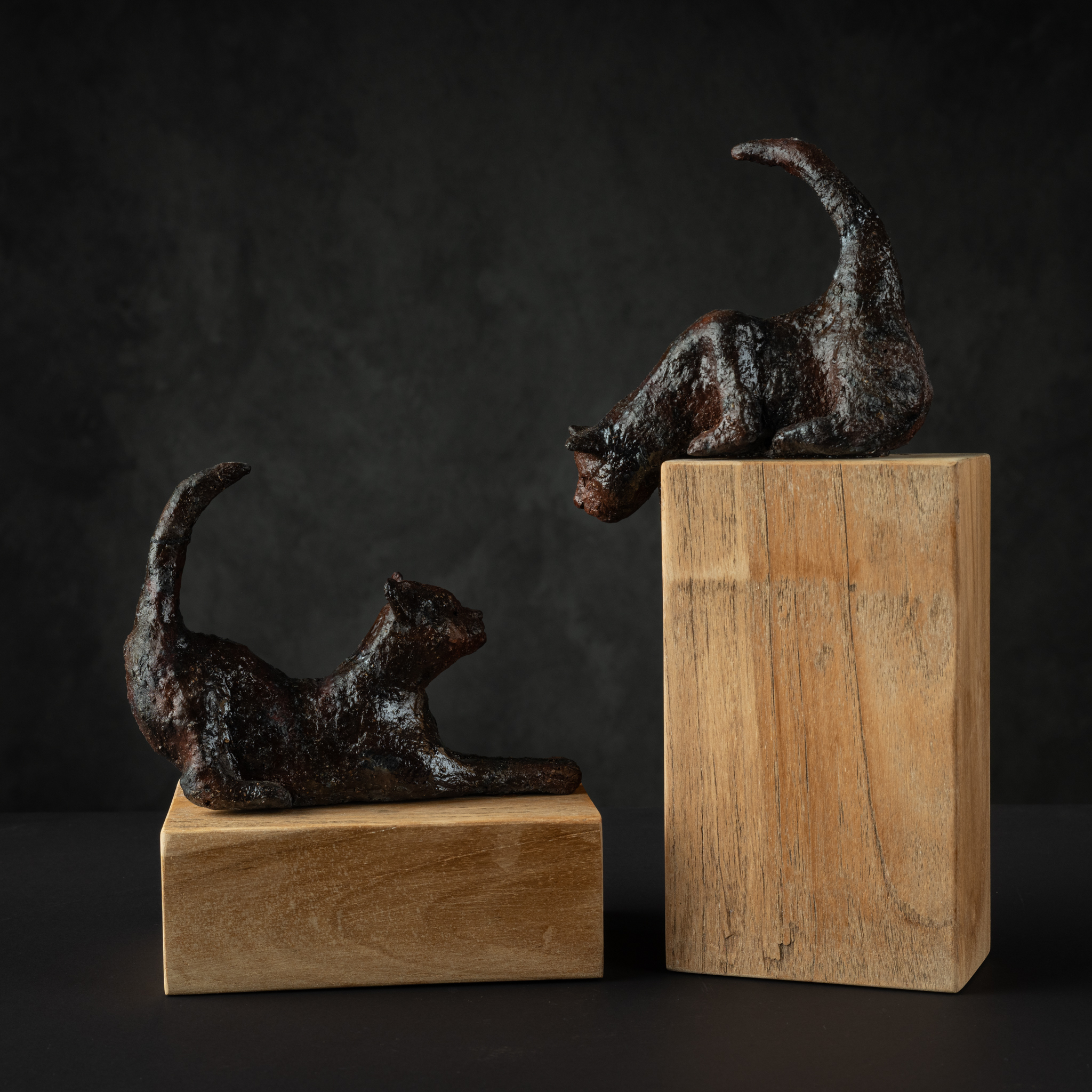 Kattentaal is gemaakt van grove chamotte klei. Gestookt in de saggar pot, en afgewerkt met een glazuur.