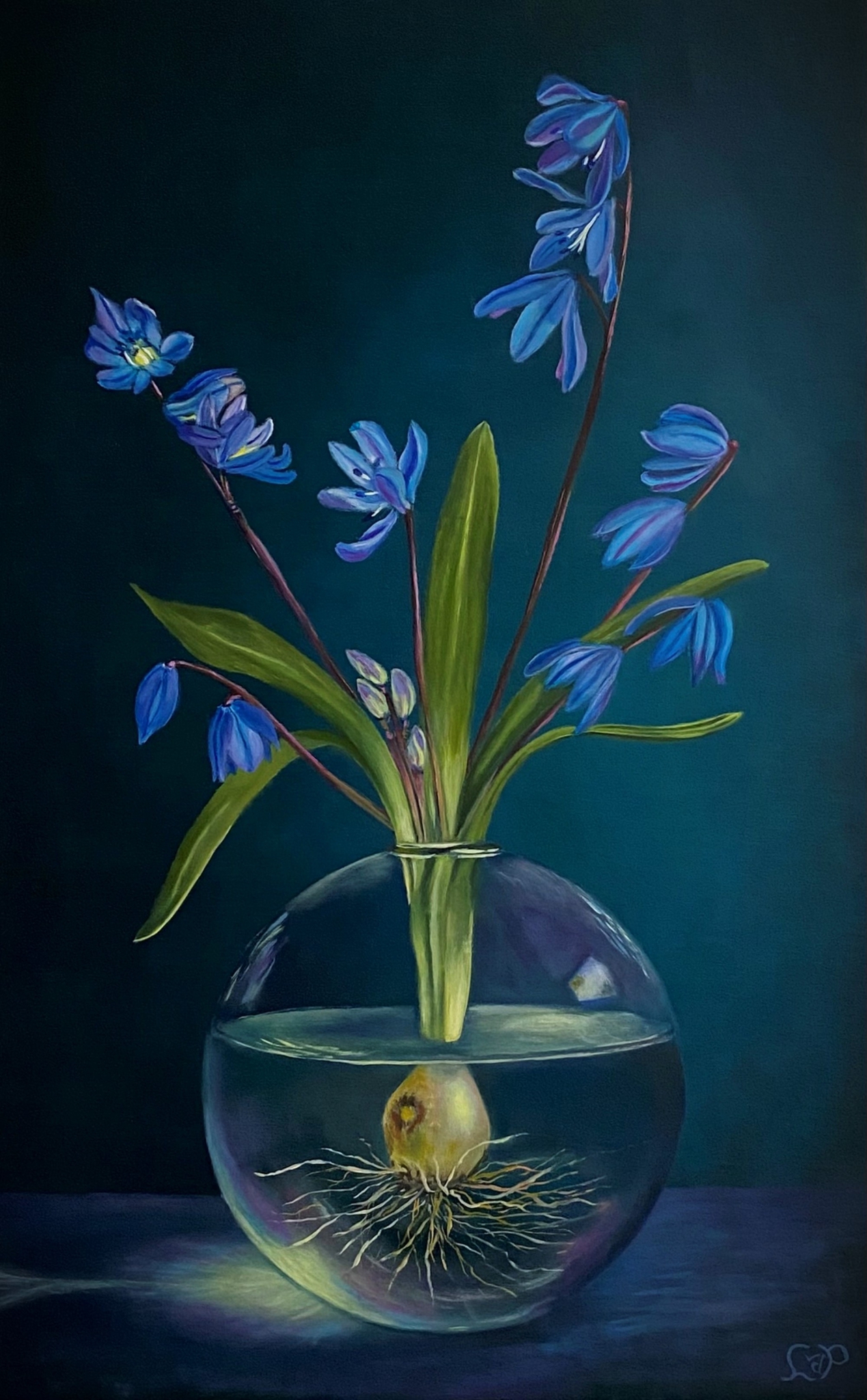 Blauw Glas Tuin Bloem Voorjaar Liannevanderplaat Liefdeinglas Oostersehyacinth Realistischschilderij