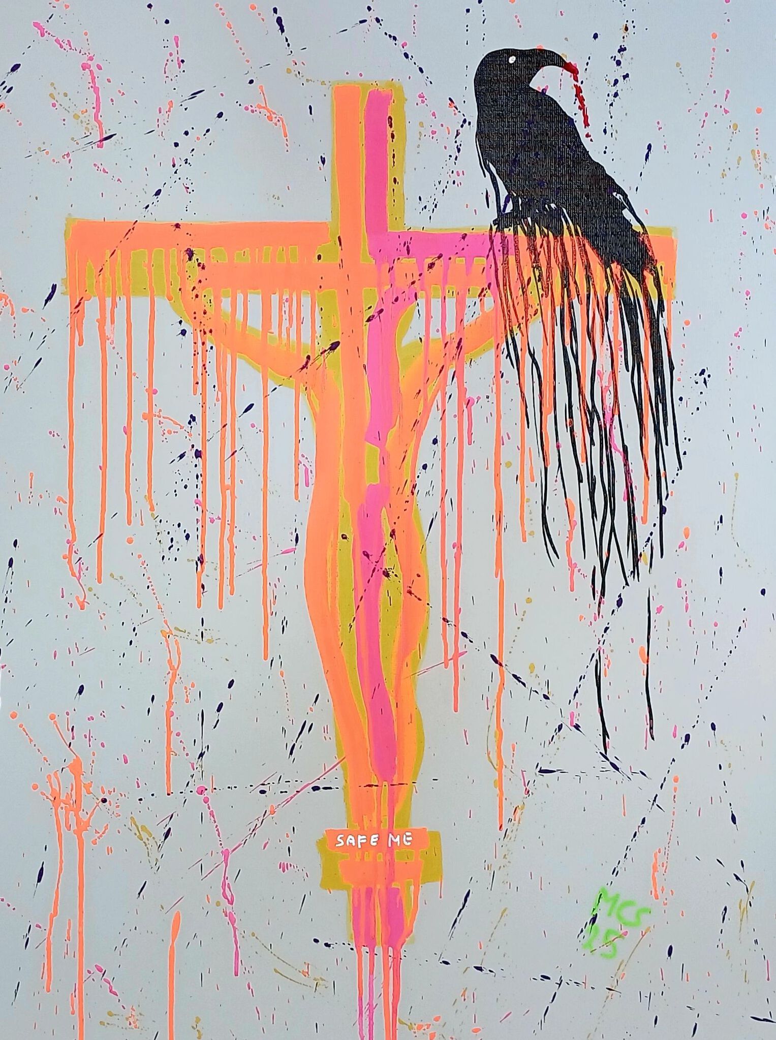 Acrylic Markers on canvas SAFE ME, Maak me veilig, in het Engels vraagt u om bescherming.