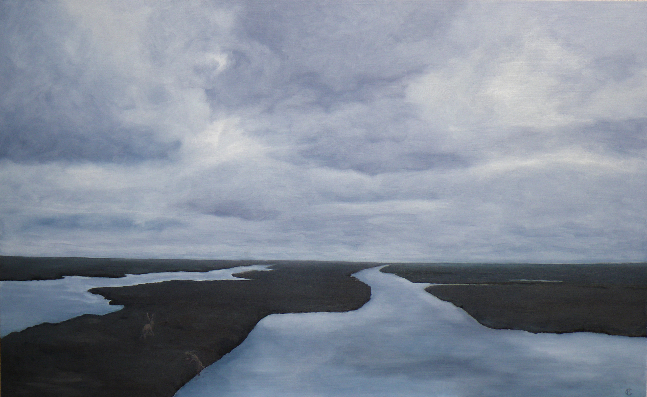 De weidsheid van het wad, wind en water tot aan de horizon. Het is deze weidsheid die ik in mijn landschappen wil laten zien. In dunne lagen olieverf geef ik de tere kleuren tussen land en water weer.