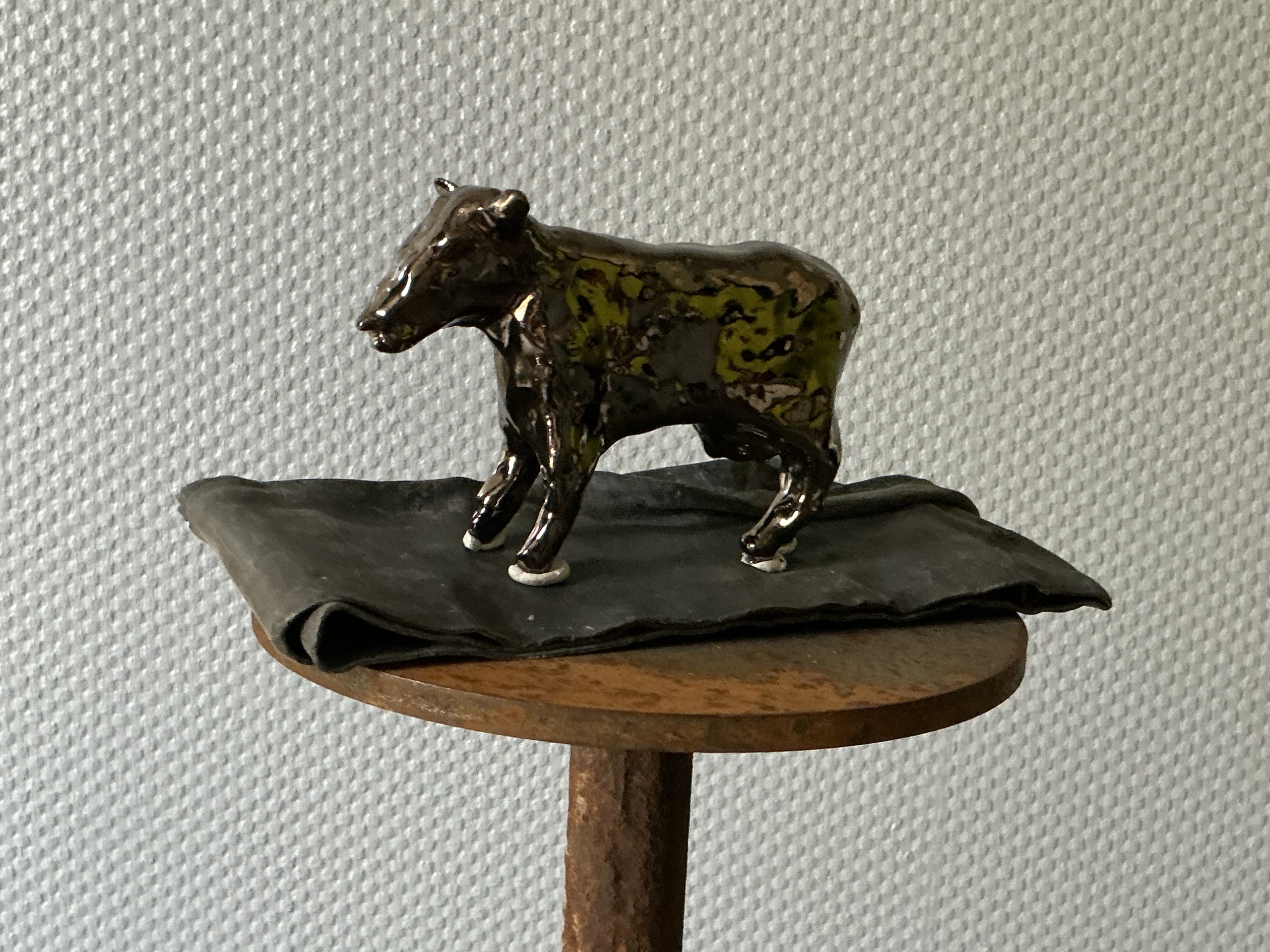Goud, bronskleurig kalfje op lood