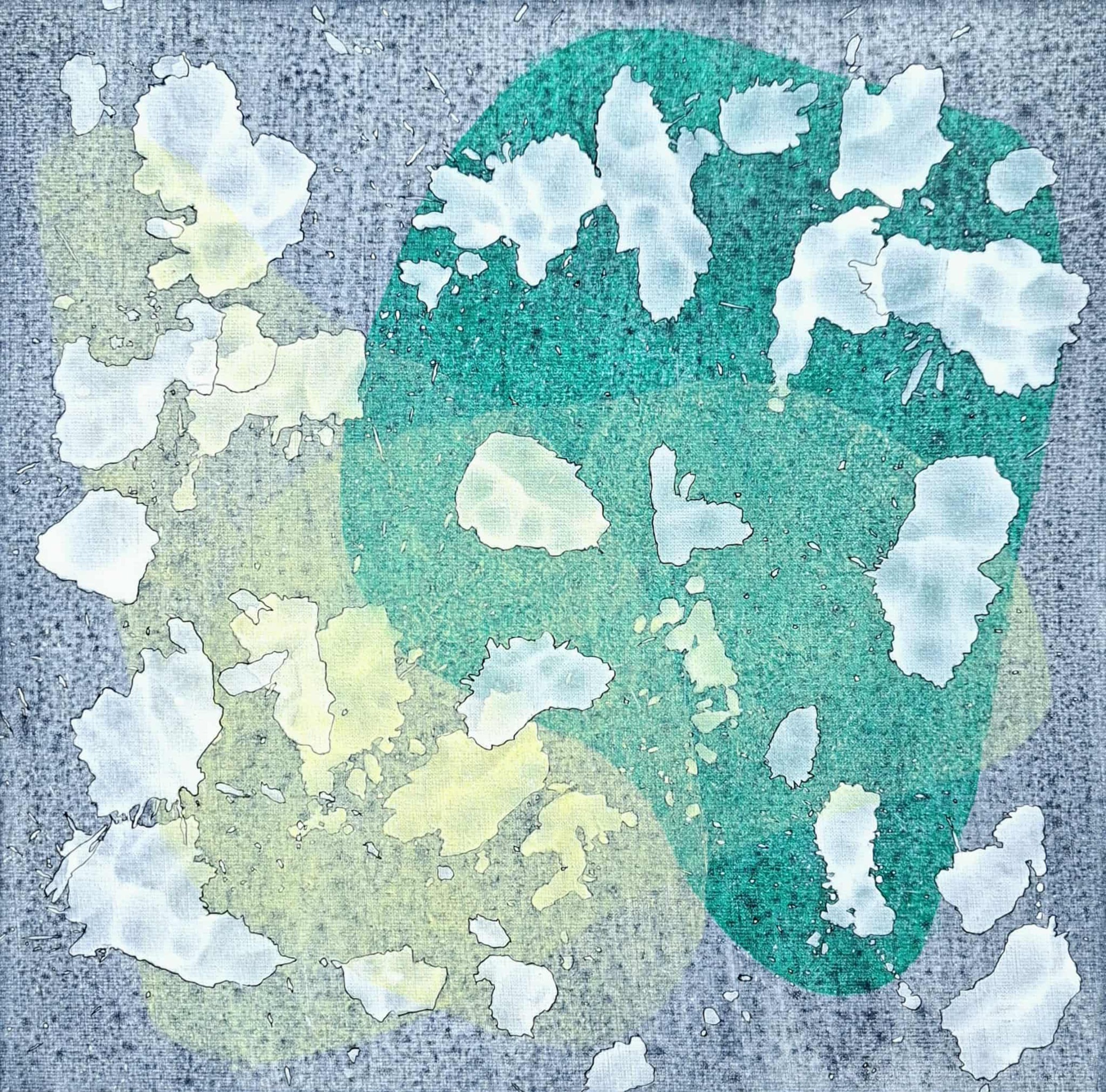 Modern abstract schilderij. Uitgevoerd in olieverf en inkt op linnen. Gesigneerd en ingelijst in een stalen baklijst. Prijs op aanvraag