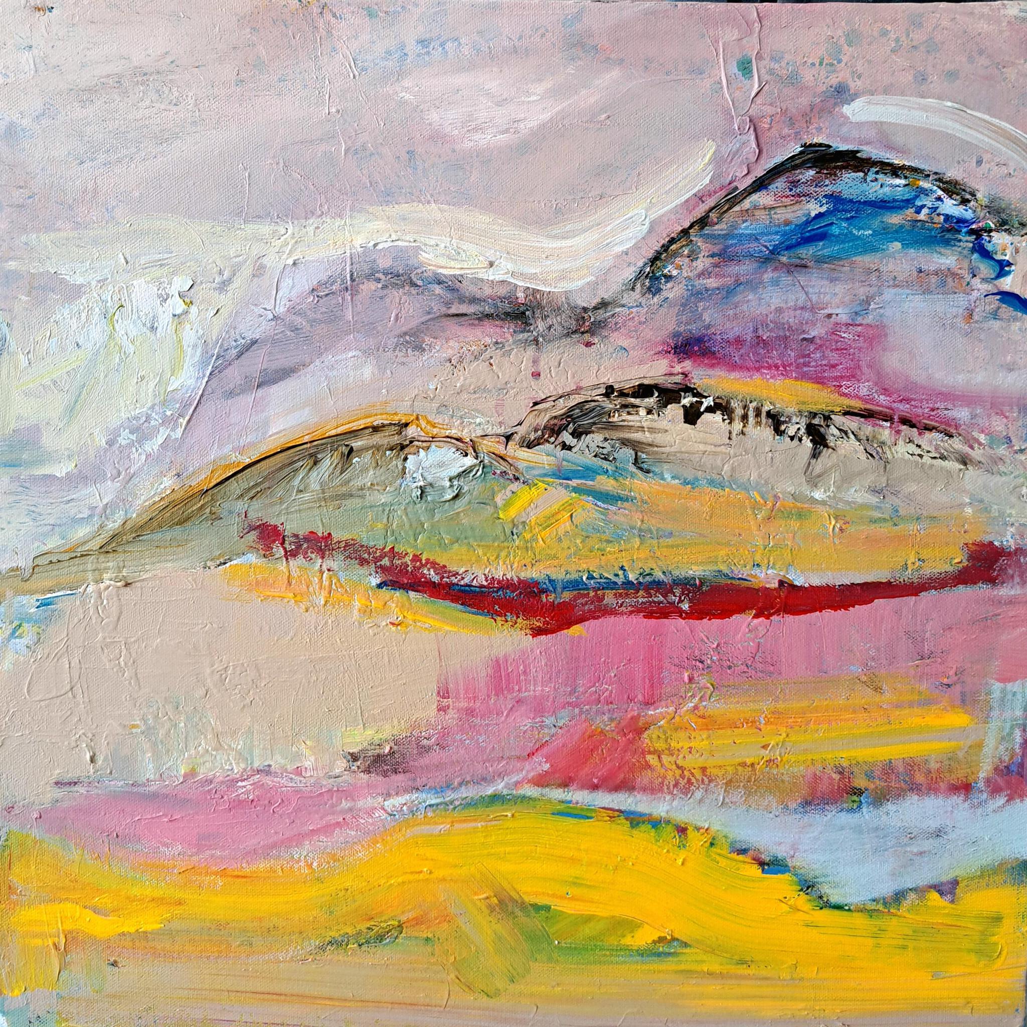 Abstract - landschap. Expressief en intuitief geschilderd. Kleurrijk en vrolijk/fris van kleur
