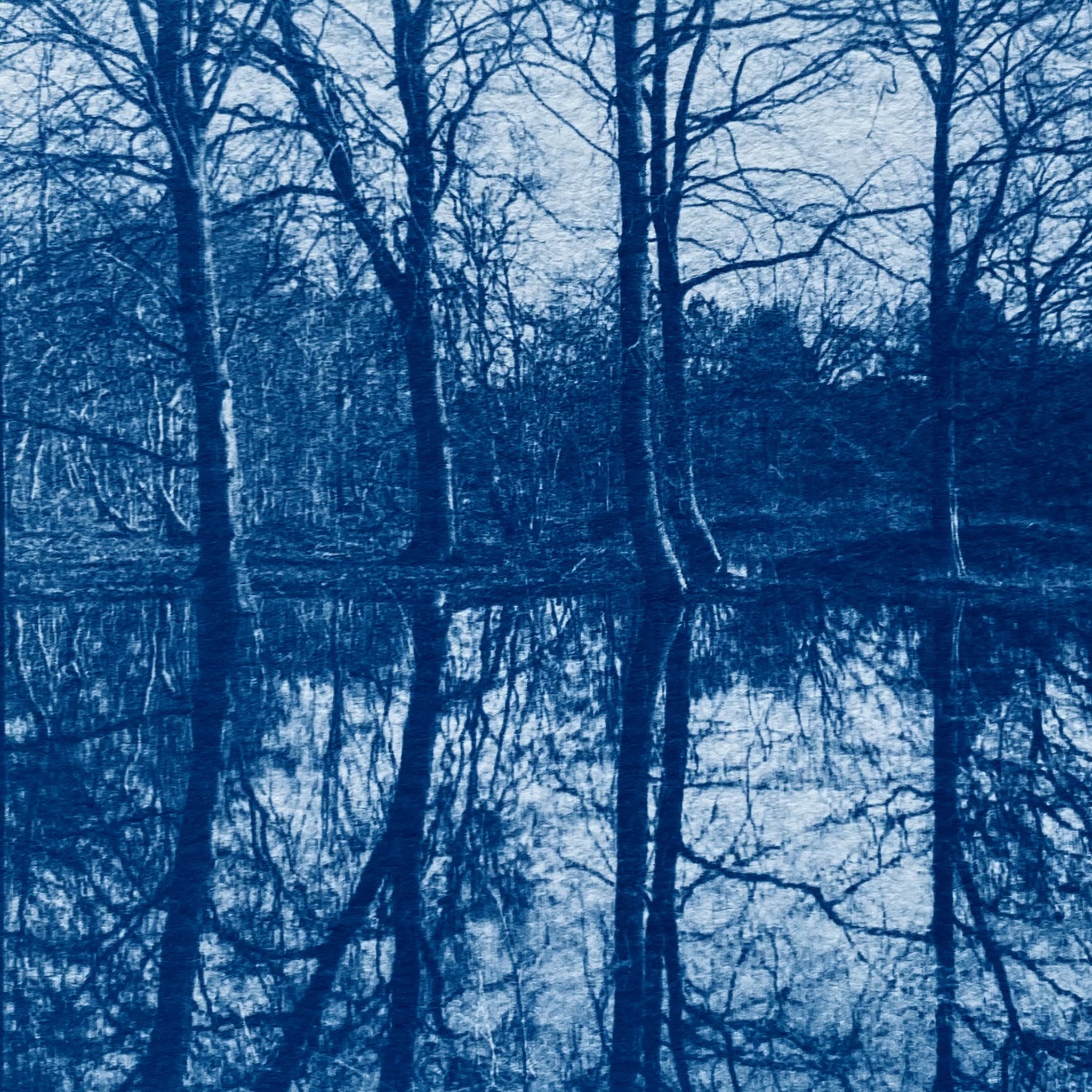 Uit de reeks Bergens Blauw, een serie unieke fotogrammen in Cyanotype techniek. De fotogrammen zijn gemaakt op 300 grams aquarelpapier en zitten in een klein houten bak lijstje. Afmeting inclusief lijst.