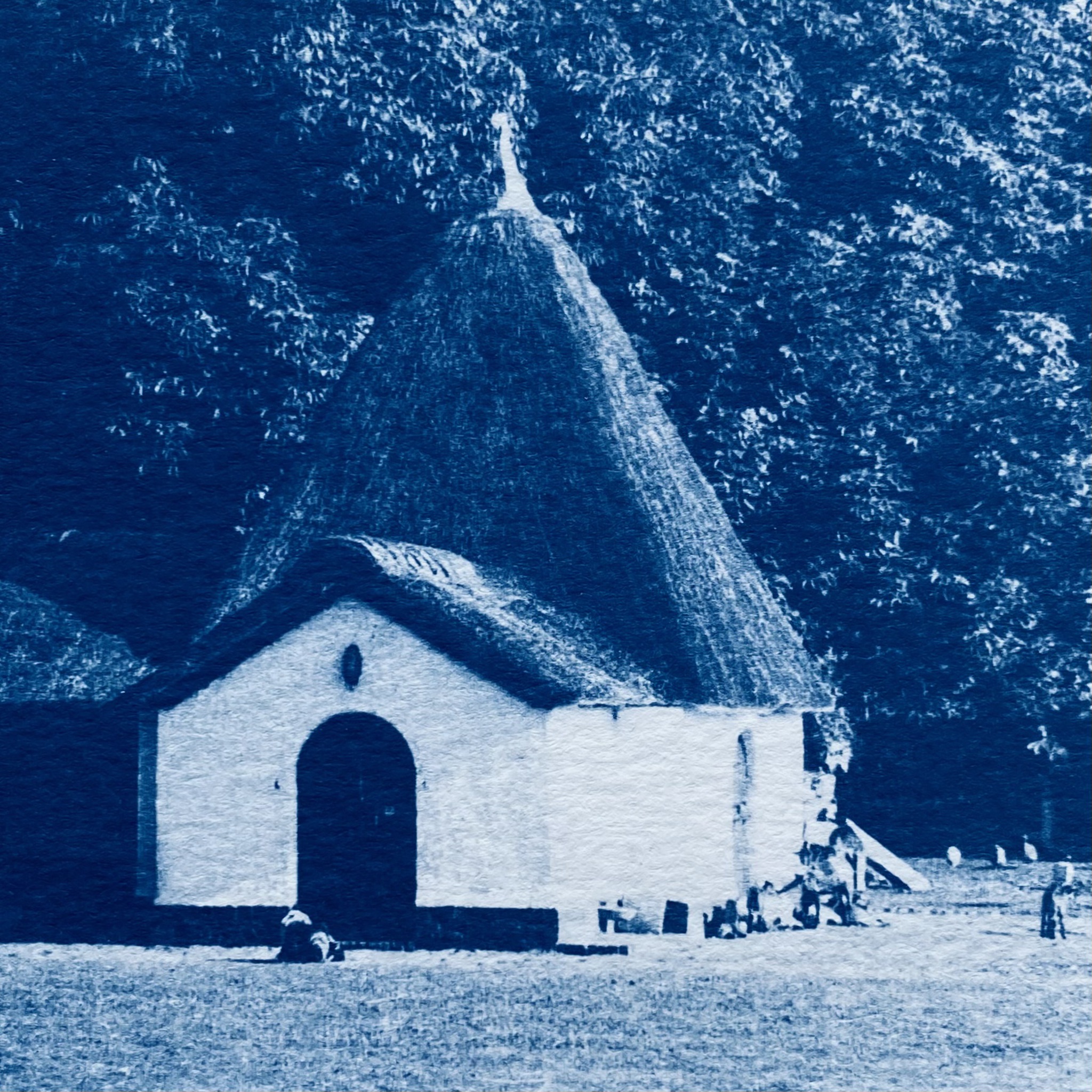 Uit de reeks Bergens Blauw, een serie unieke fotogrammen in Cyanotype techniek. De fotogrammen zijn gemaakt op 300 grams aquarelpapier en zitten in een klein houten bak lijstje. Afmeting inclusief lijst.