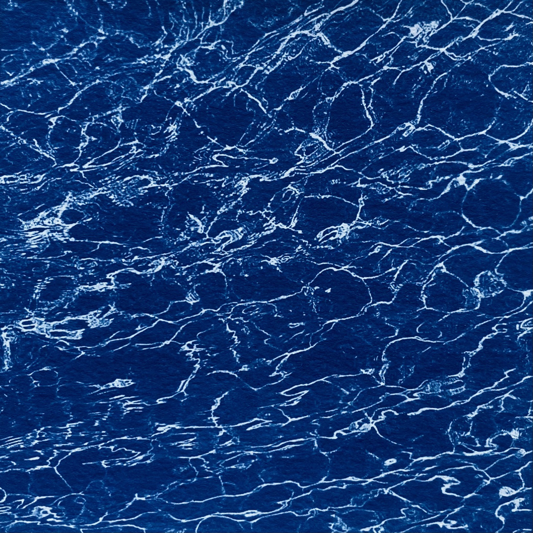 Uit de reeks Bergens Blauw, een serie unieke fotogrammen in Cyanotype techniek. De fotogrammen zijn gemaakt op 300 grams aquarelpapier en zitten in een klein houten bak lijstje. Afmeting inclusief lijst.