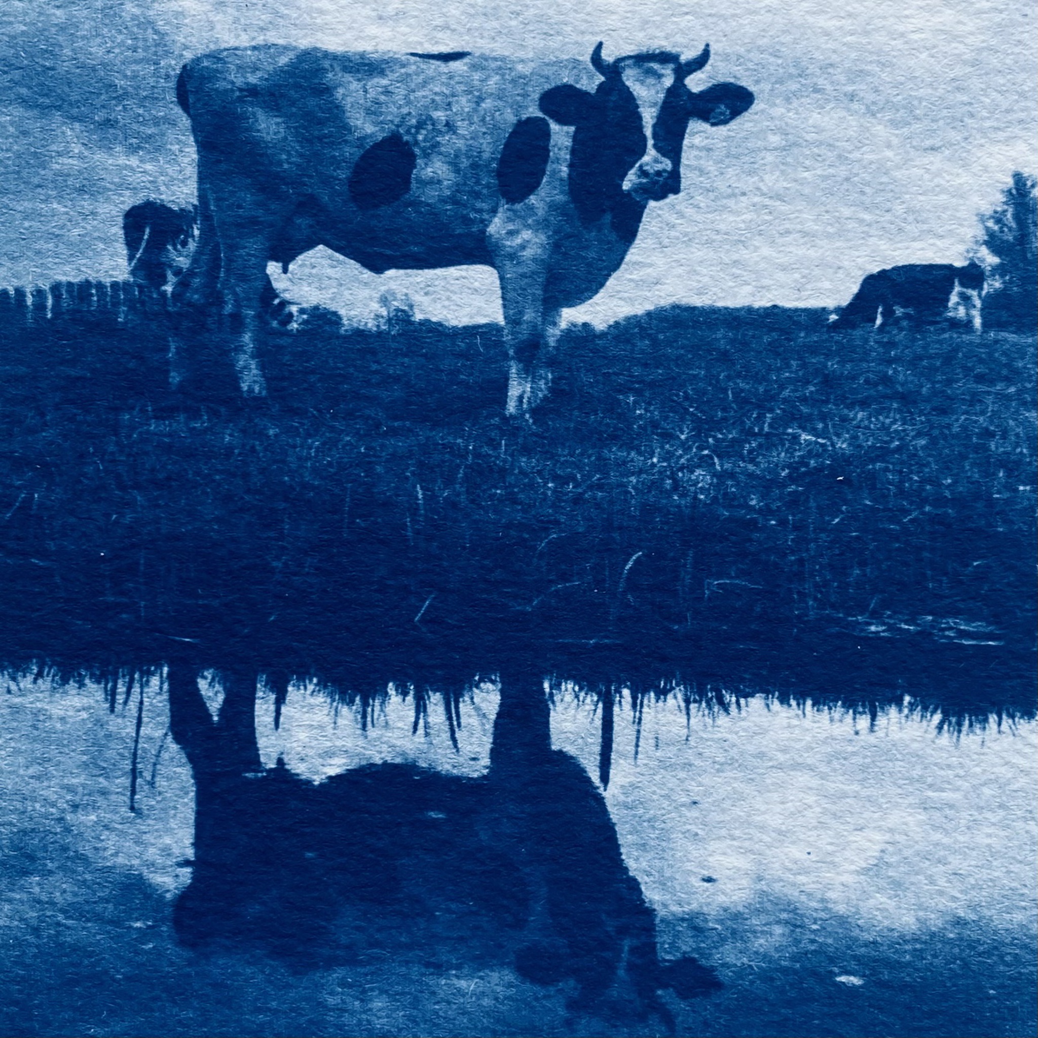 Uit de reeks Bergens Blauw, een serie unieke fotogrammen in Cyanotype techniek. De fotogrammen zijn gemaakt op 300 grams aquarelpapier en zitten in een klein houten bak lijstje. Afmeting inclusief lijst.