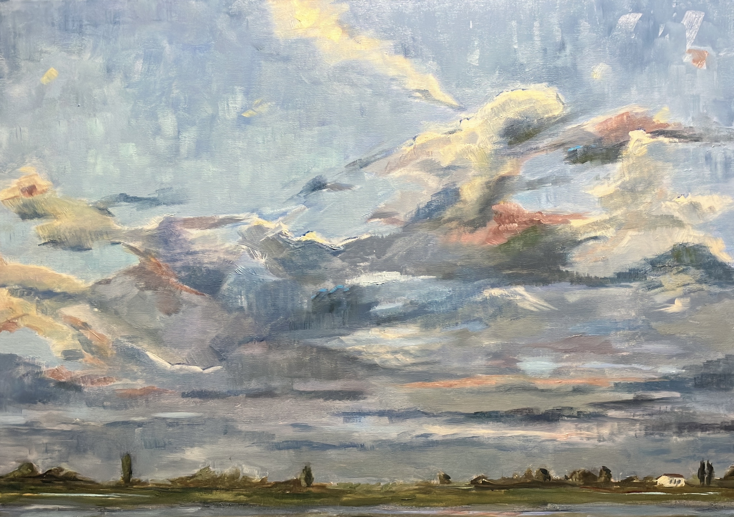 Landschap, impressies daarvan ,stille plekken waar ik graag was, af en toe een stilleven. Meestal in olieverf, soms aquarel. Kleur is waar ik van hou.