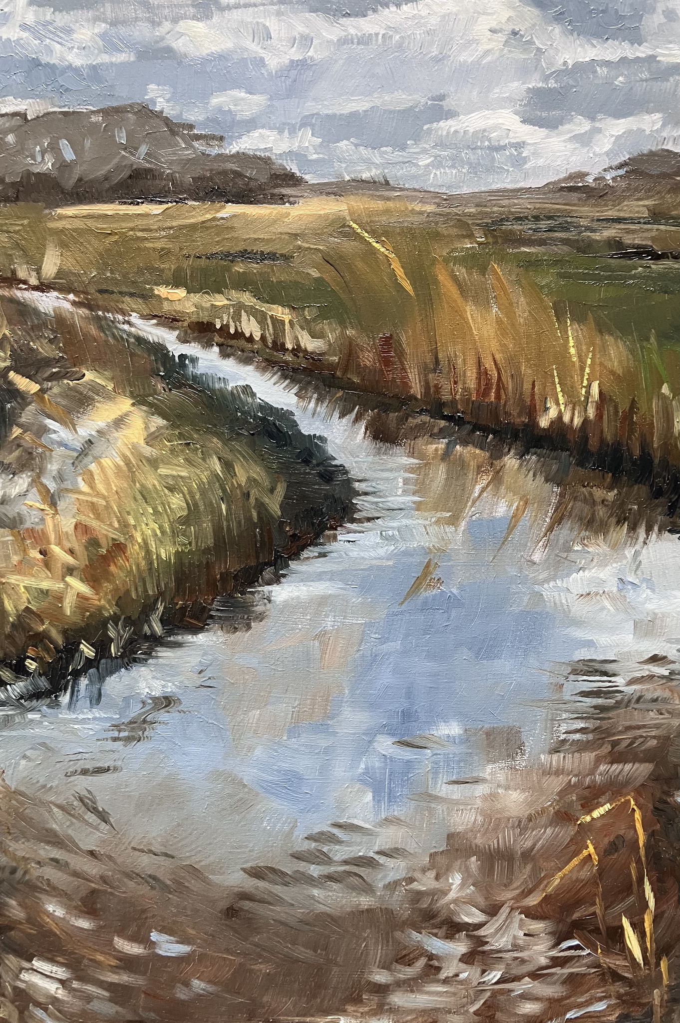 Landschap, impressies daarvan ,stille plekken waar ik graag was, af en toe een stilleven. Meestal in olieverf, soms aquarel. Kleur is waar ik van hou.