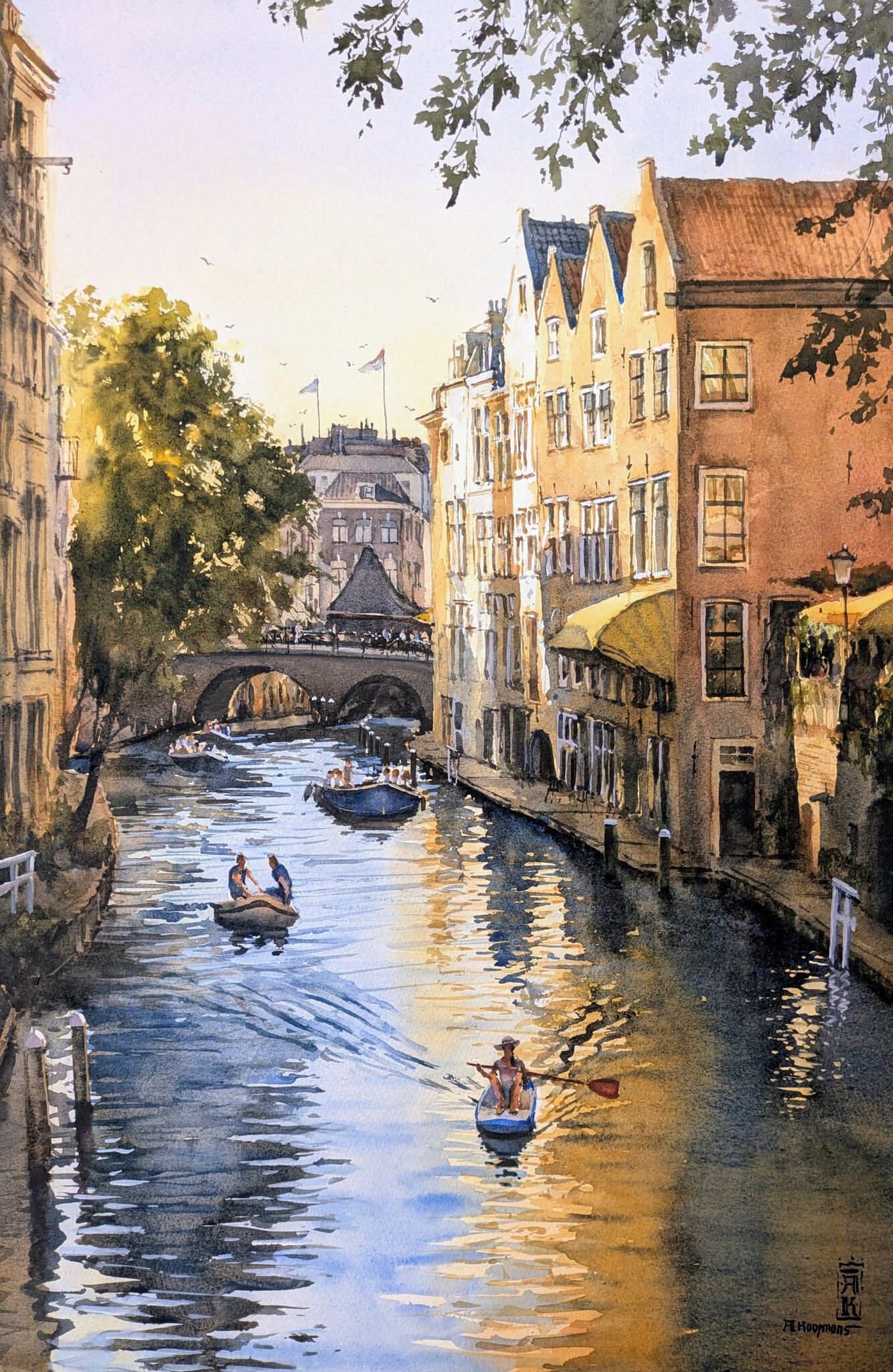 Mijn werk is vooral een ode aan het Nederlandse landschap, de steden, het water, een enkel buitenlands avontuur. Met de transparantie van aquarel schilder ik licht en kleuren op de mooiste momenten.