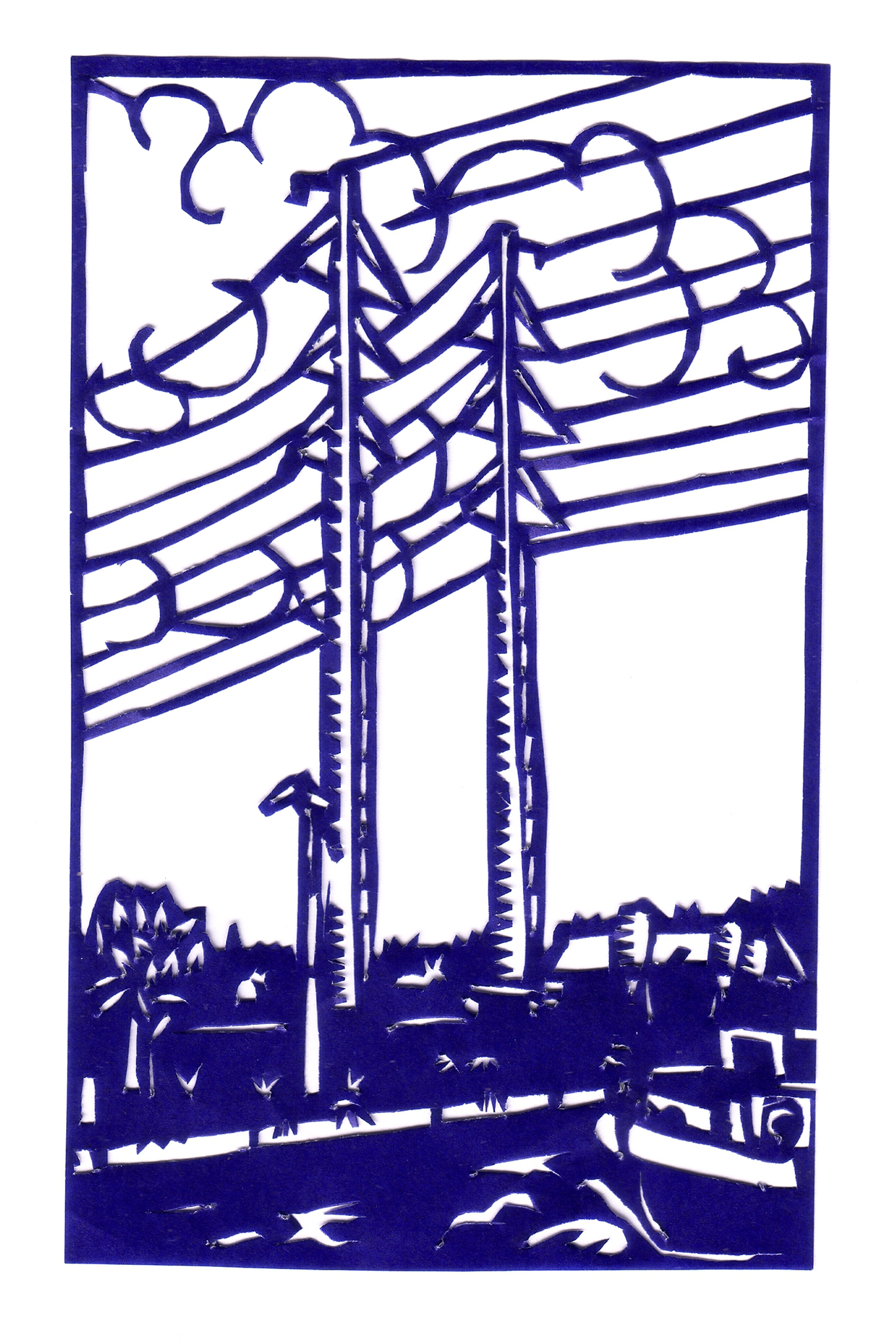 Wintrack Hoogspanning Aduard Vanstarkenborghkanaal Groningen Papercutout Knipsel Knipwerk Papierknipkunst Knipkunst Scherenschnitt Decoupage
