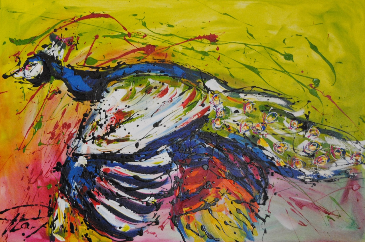 Abstract Figuratief Kleurrijk Kunst Vliegen Pauw