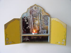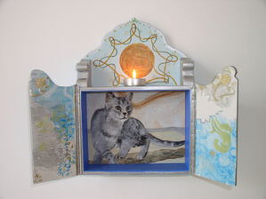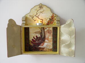 In mijn schilderijen zie je de wonderlijke wereld van de natuur met soms sprookjesachtige figuren. Naast schilderijen maak ik altaartjes en kandelaars van gerecycled en beschilderd glas.