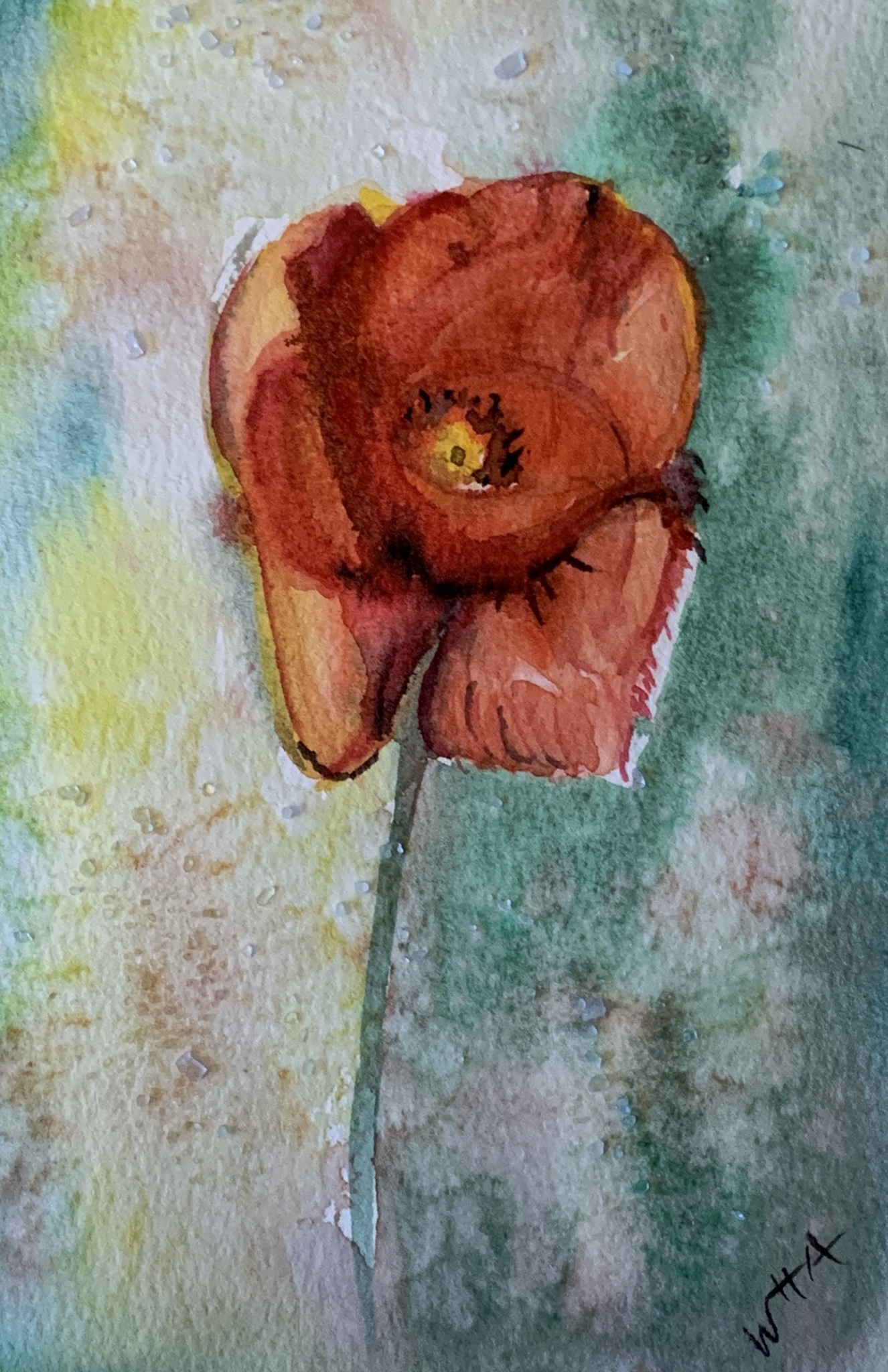Expressief Aquarel Klaproos Watercolor Kaart Poppy Complementair Roodengroen
