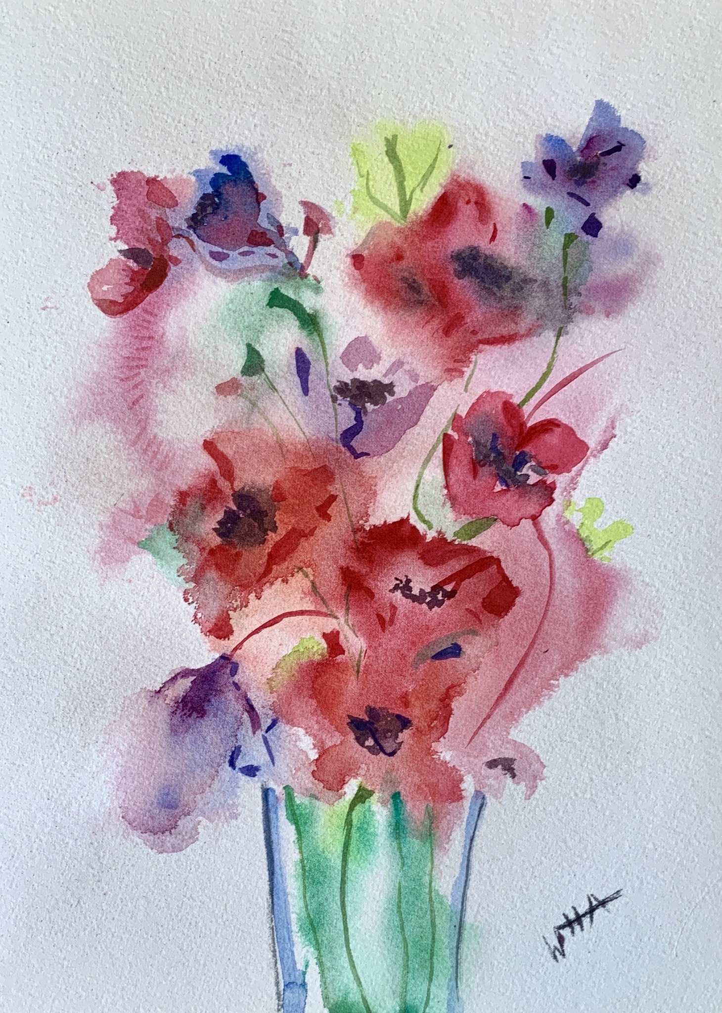 Expressief Kleurrijk Aquarel Kaart Boeket