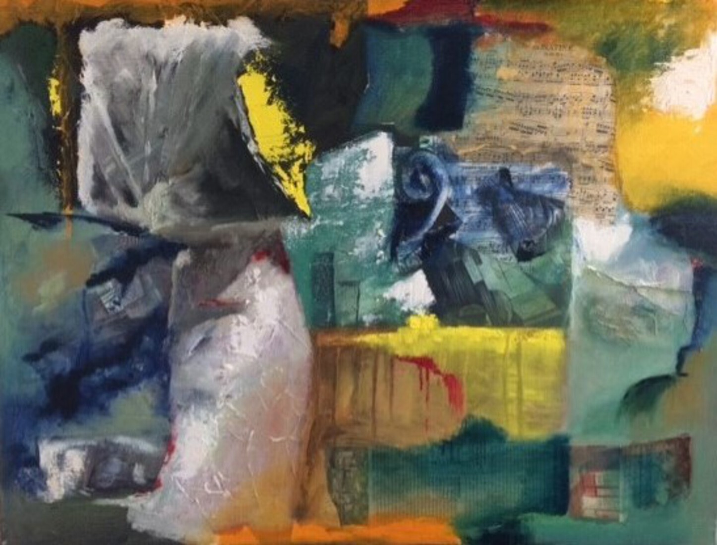 Eerst een collage gemaakt daarna geschilderd op doek met een muzikale toets.