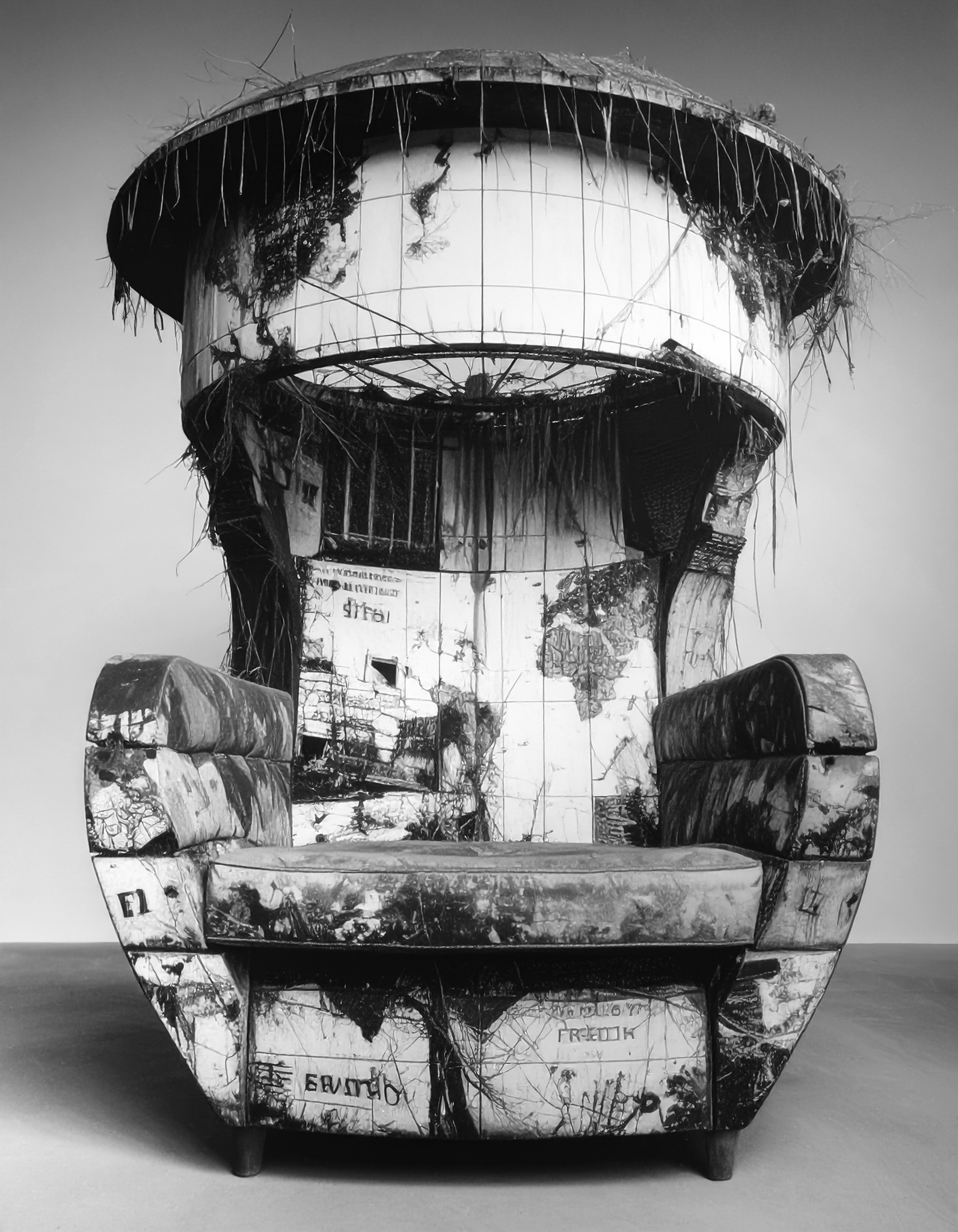Art Stoel Kunst Design Wereld Zwartwit Stoelen Interieur Kunstenaars Chair Decay Ai Digitalart Digitalekunst Contemporaryart Digitalartist Wereldverval