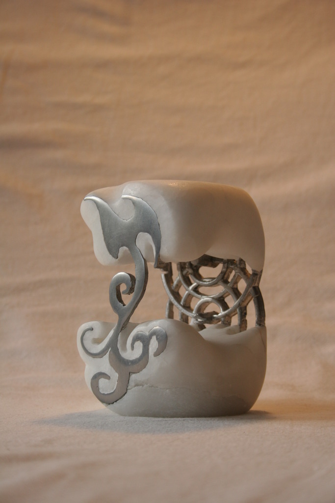 Wit White Scheiding Separation Abstract Art Soapstone Unique 50/50 Solder Soldeer Beeldhouwen Albast Alabaster Serpentijn Serpentine Sculpture Stone Steen Speksteen Exclusive Ingelegd Inlayed Metaal Metal