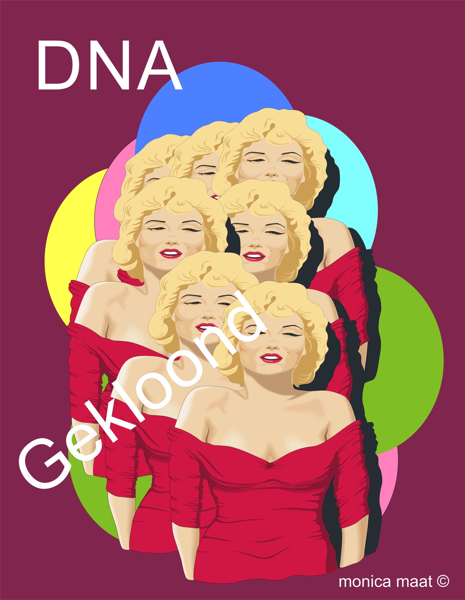 Ontwerp: digitale grafiek 'DNA GEKLOOND met hulp van AI' - Gedrukt als 'affichekunst' op plexiglas.