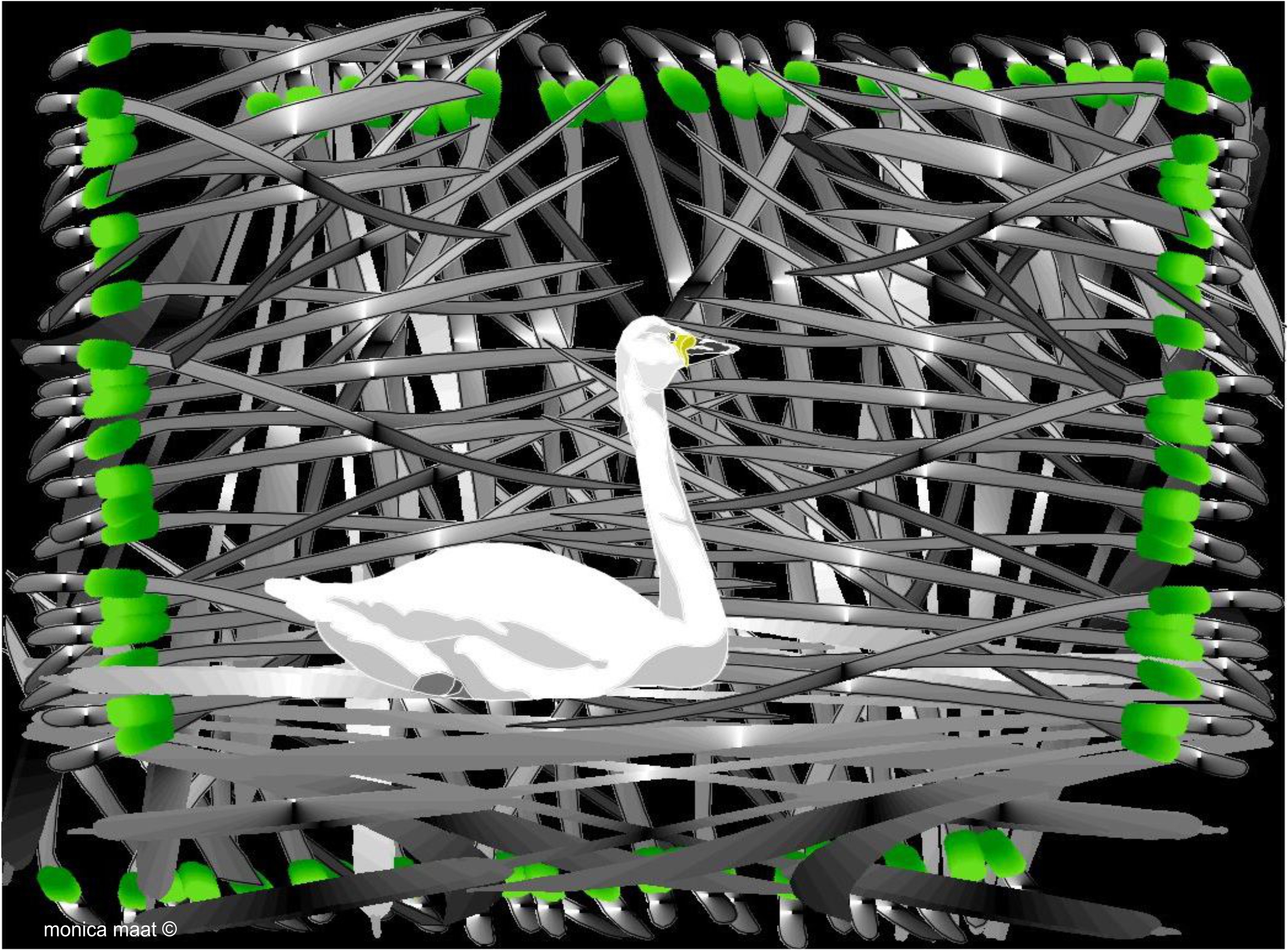 Computerart Verdwaalde Zwaan tussen Rietgras