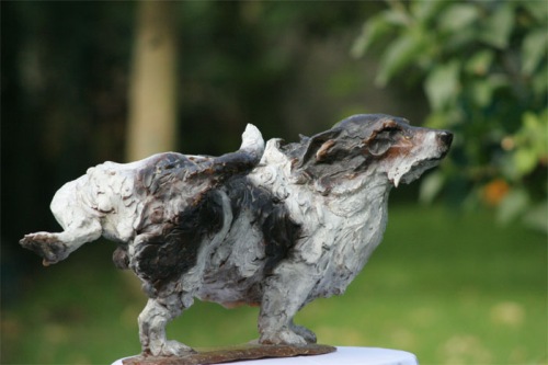 Hond Vicky zittend uitvoering in brons
