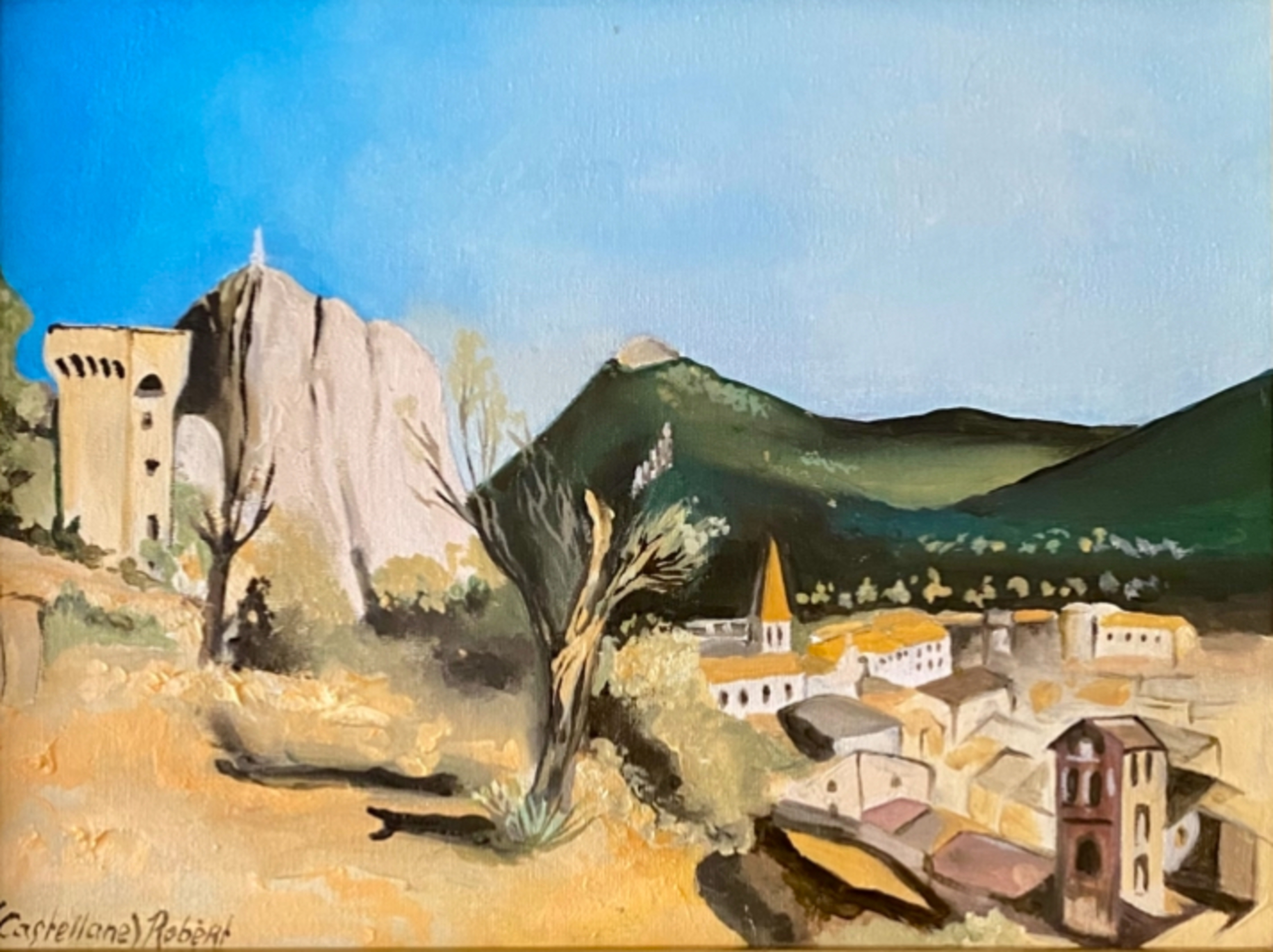 'Castellane' dorpje in Frankrijk. Ik ben daar geweest met mijn vrouw en dochter en wilde dit prachtige dorpje vastleggen op doek als mooie herinnering. Het werk wordt compleet met lijst verkocht.