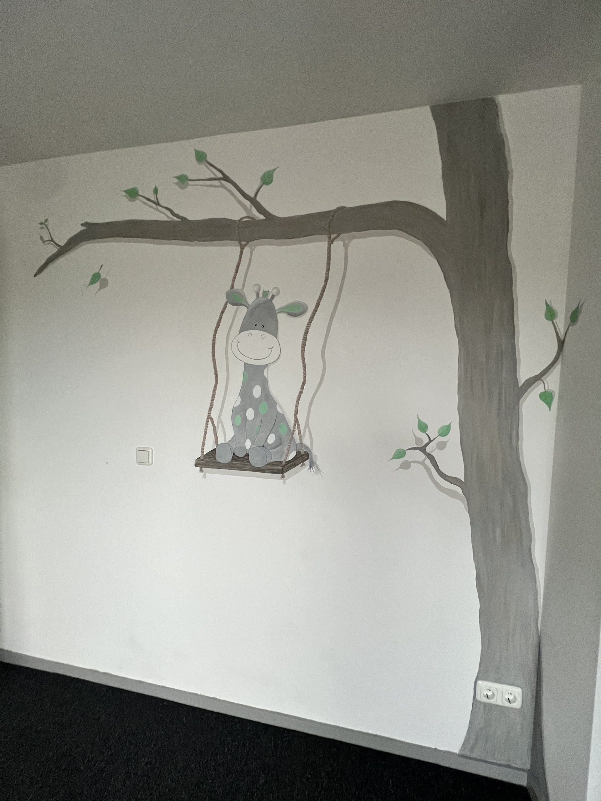 Kind Giraffe Boom Tree Kinderkamer Giraf Muurschildering Schommel Mural Mint Swing Mintgroen Swinging Schommelen