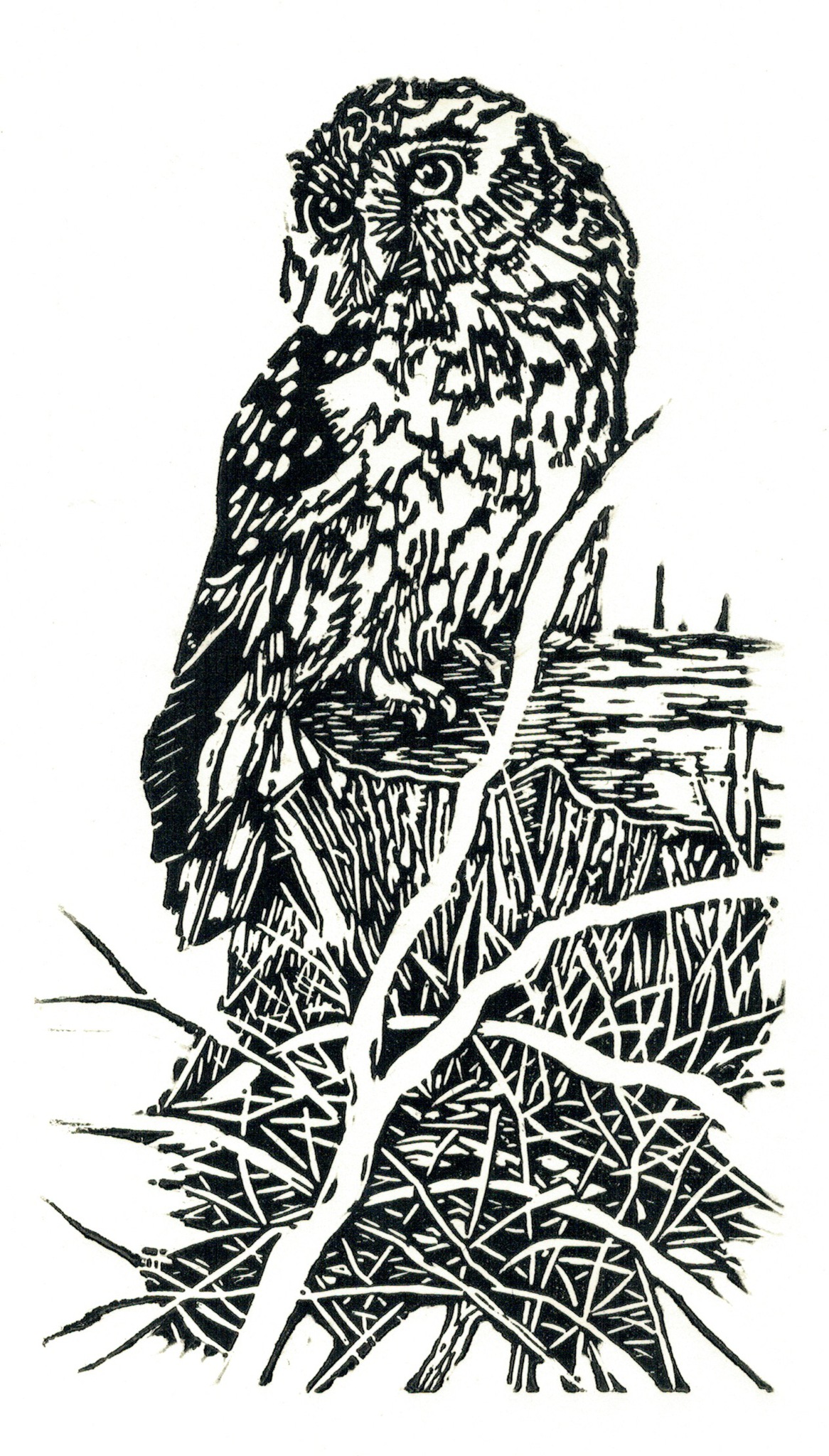 Wit Zwart Uil Linosnede