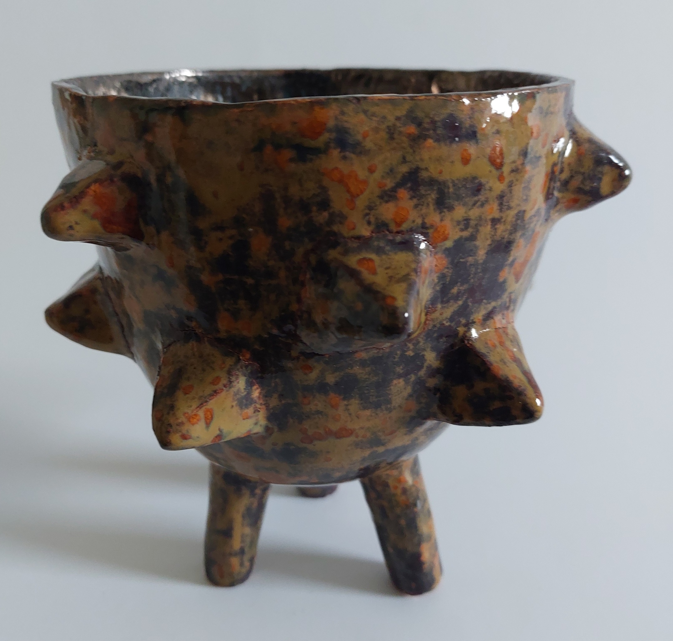 Bruin bloempotje, gestookt op 1100 graden. Geglazuurd op rode klei.