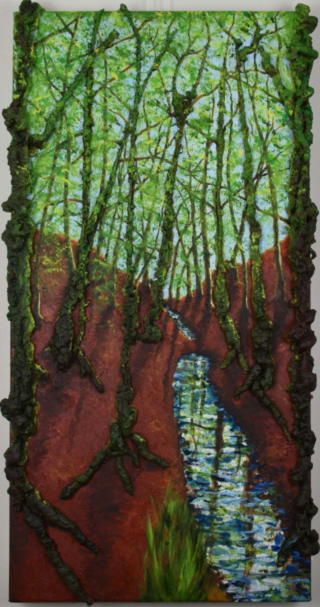 3d schilderij. Mixed media: olieverf met purschuim en touw.