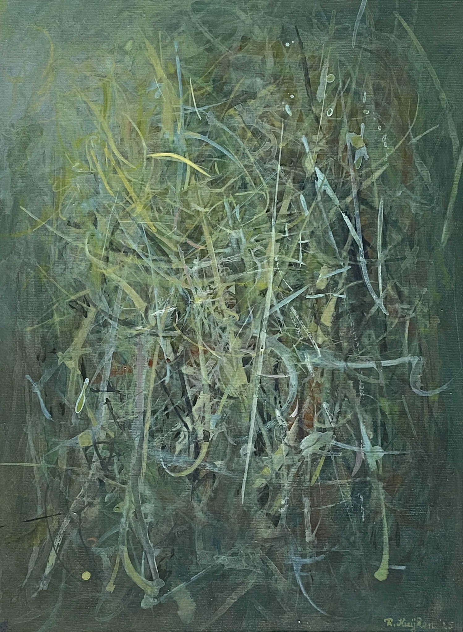 Een kunstwerk is voor mij een zoekwerk, van een leeg doek naar een compositie van abstracte vormen in kleuren die diepte, ruimte, lichtinval en contrast tot een uitgebalanceerd geheel brengen.