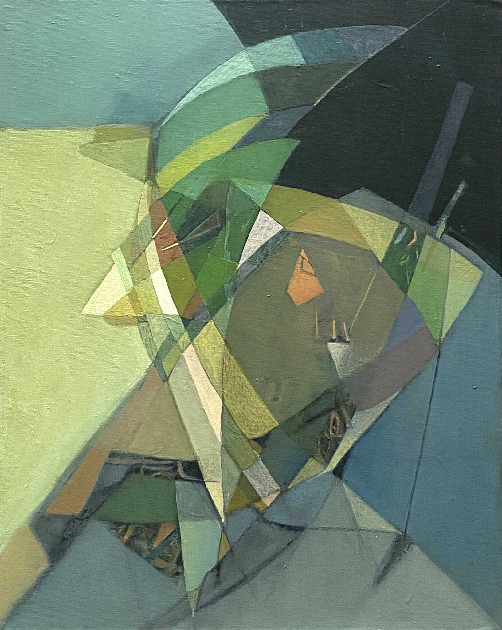 Een kunstwerk is voor mij een zoekwerk, van een leeg doek naar een compositie van abstracte vormen in kleuren die diepte, ruimte, lichtinval en contrast tot een uitgebalanceerd geheel brengen.