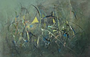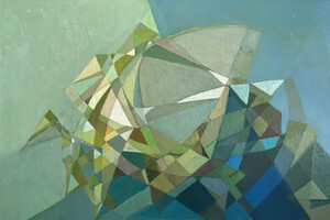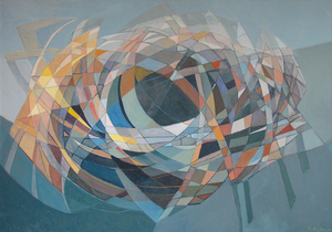 Een kunstwerk is voor mij een zoekwerk, van een leeg doek naar een compositie van abstracte vormen in kleuren die diepte, ruimte, lichtinval en contrast tot een uitgebalanceerd geheel brengen.