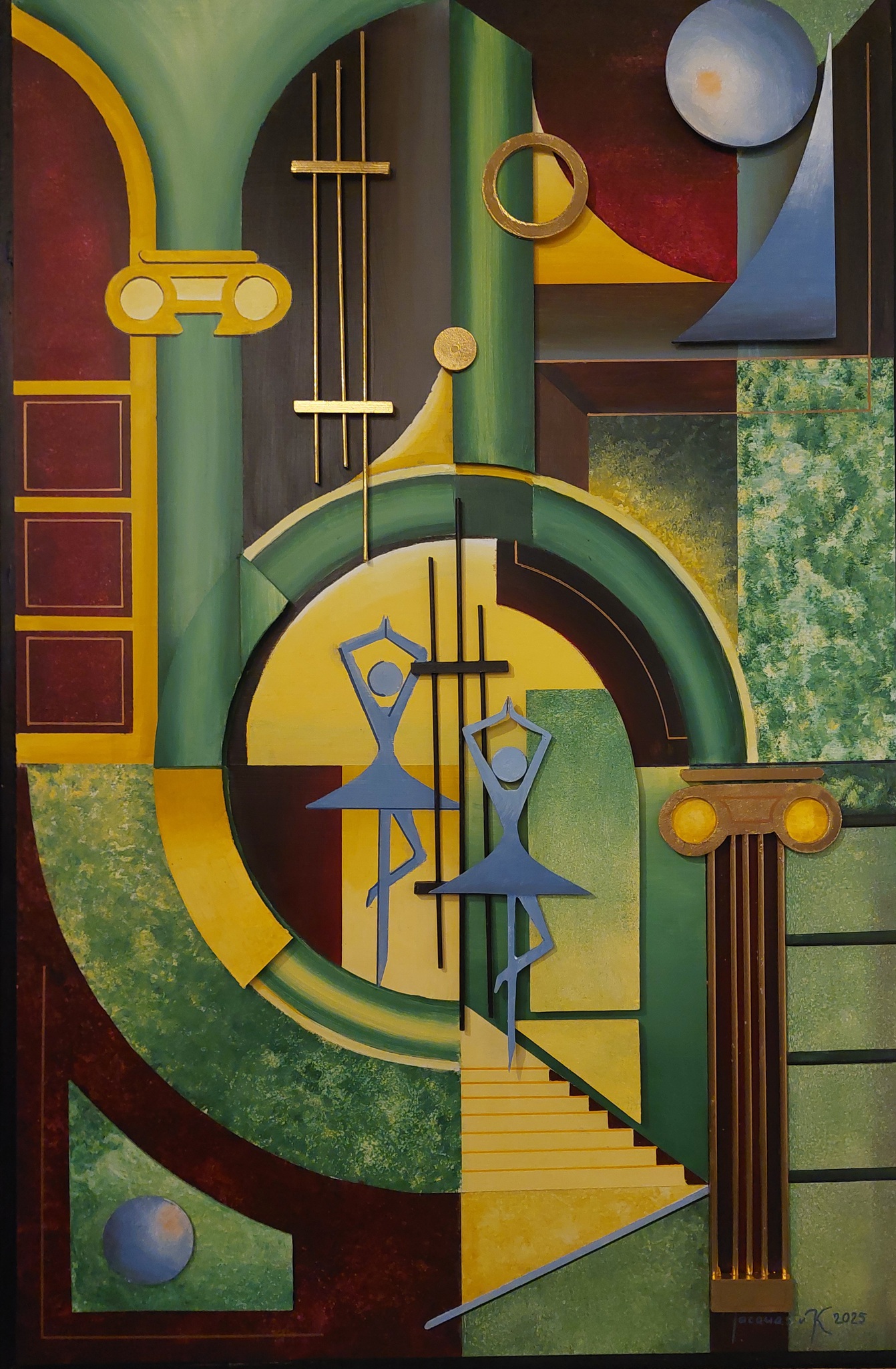 3D 2 geabstraheerde ballerina's acryl hout