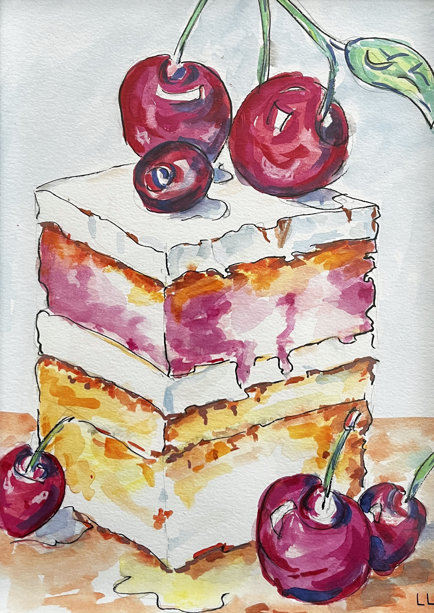 Mierlode kers met gebak Aquarel Catalogus Nr. 619.
