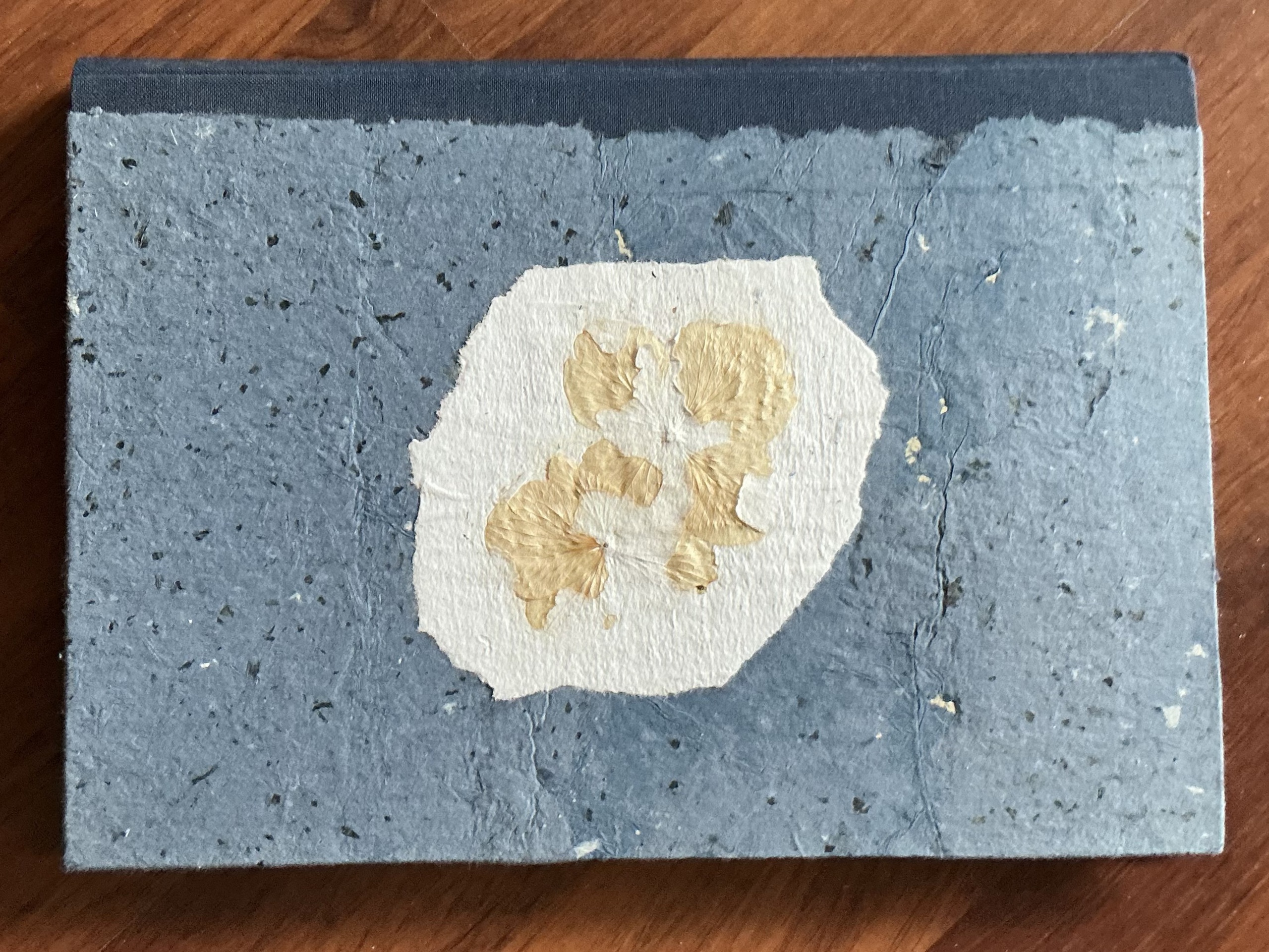 Boek van handgeschept papier ingelegd.met bloemen