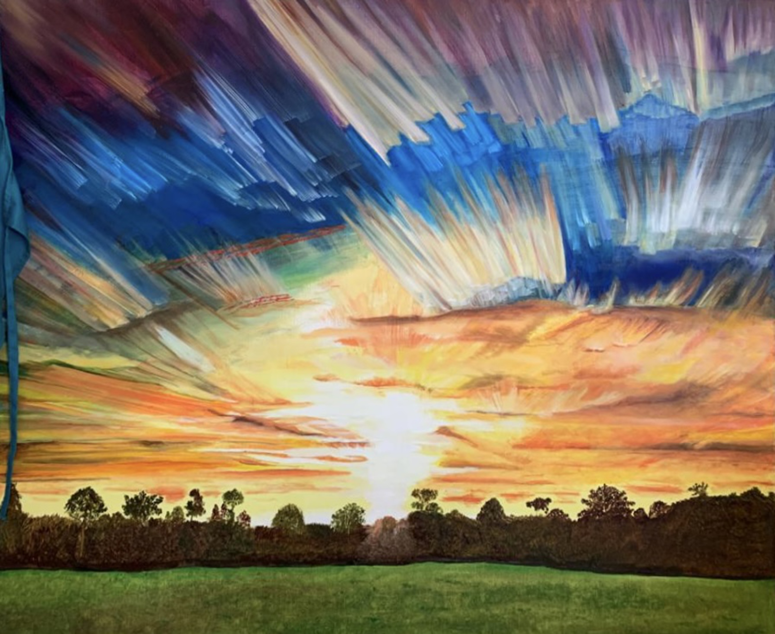 De ondergaande zoon kleurt het landschap en de lucht in de dromen van Irina Chepik als ze aan haar moederland denkt.